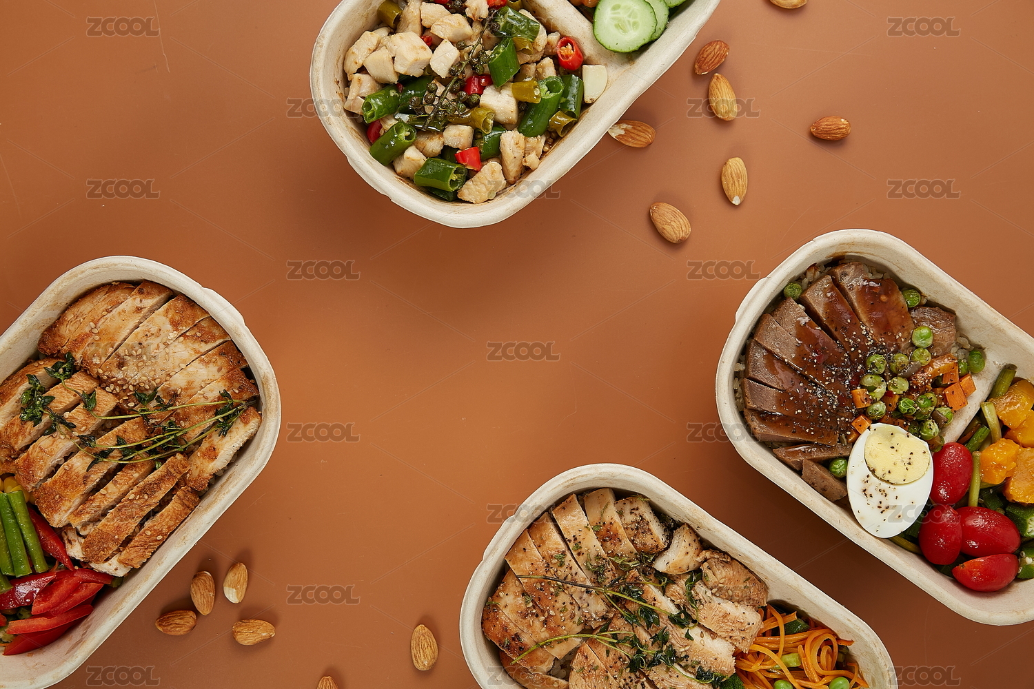 暖棕色背景上的健身减肥营养套餐