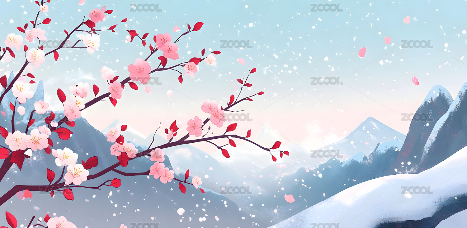 雪山樱花飞舞