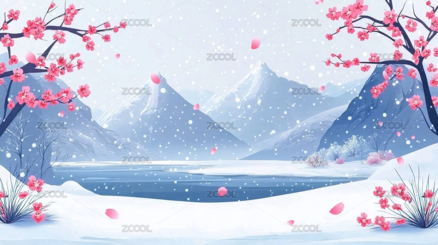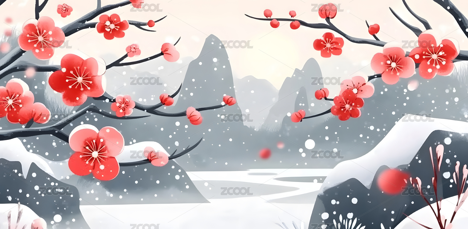 唯美冬天梅花风景插画