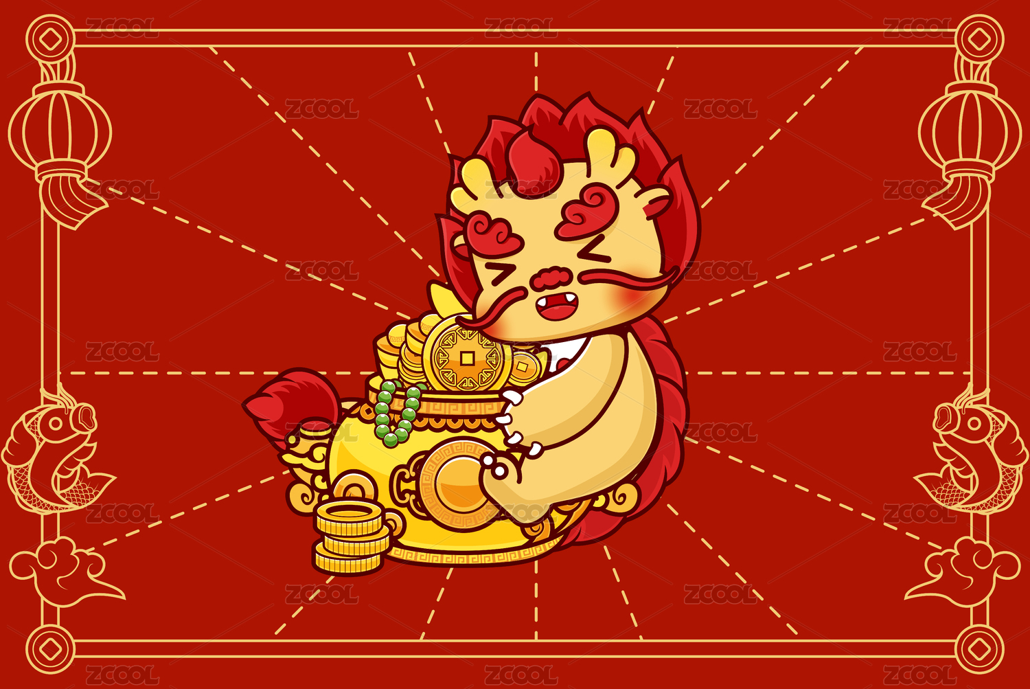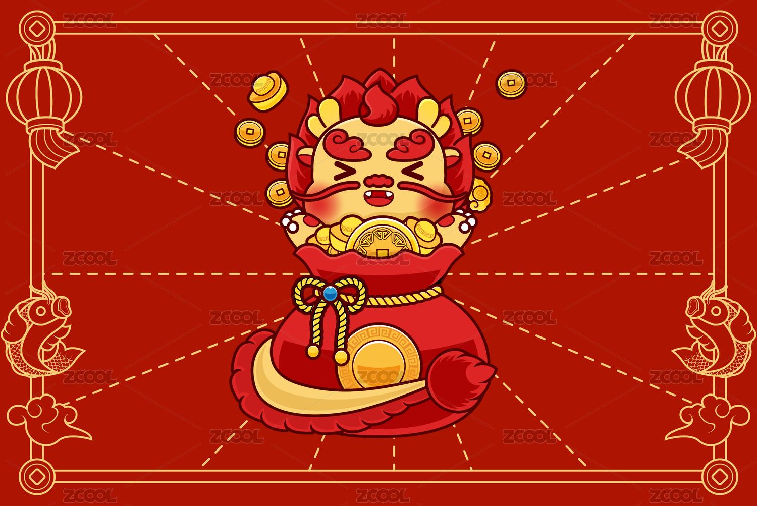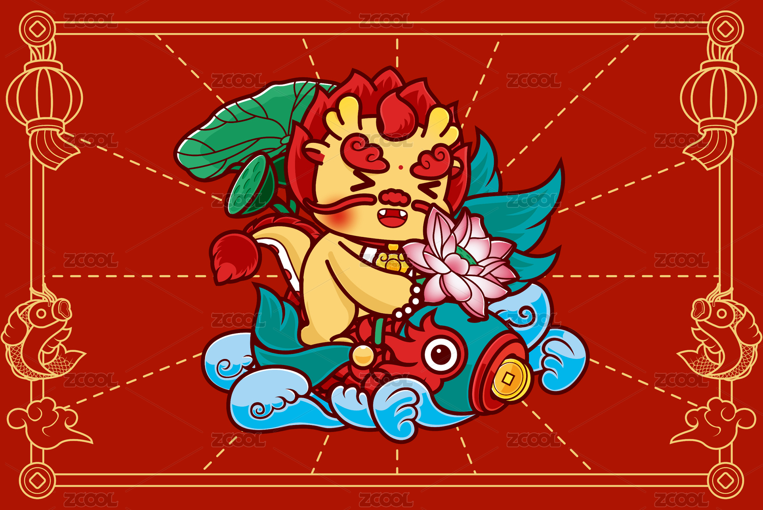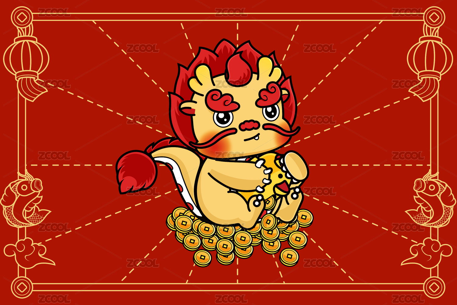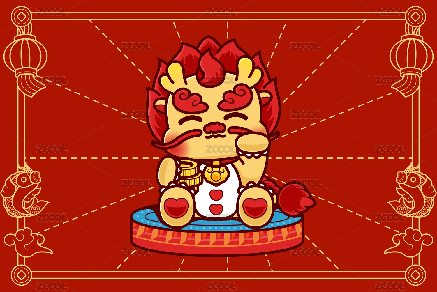 龙,龙年,卡通,喜庆,新年,春节,祝福,图案,云朵,灯笼