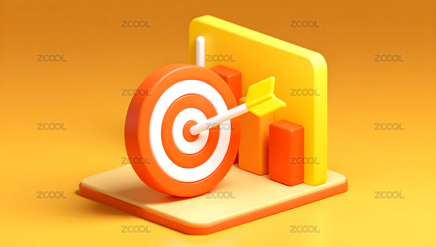 3D黄色卡通圆形靶心和柱状图图标插画元素