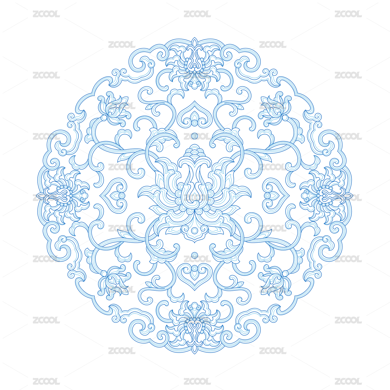 梅兰竹菊祥云仙鹤古典线条花纹图案