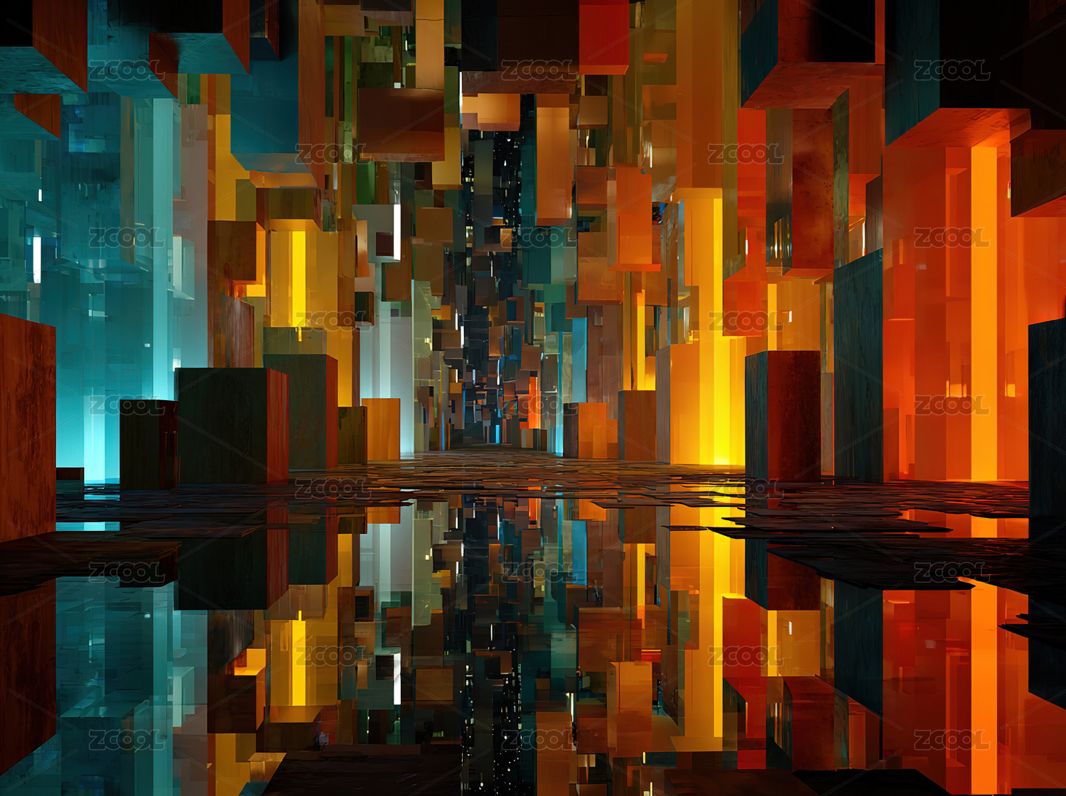 炫彩玻璃方块建筑物