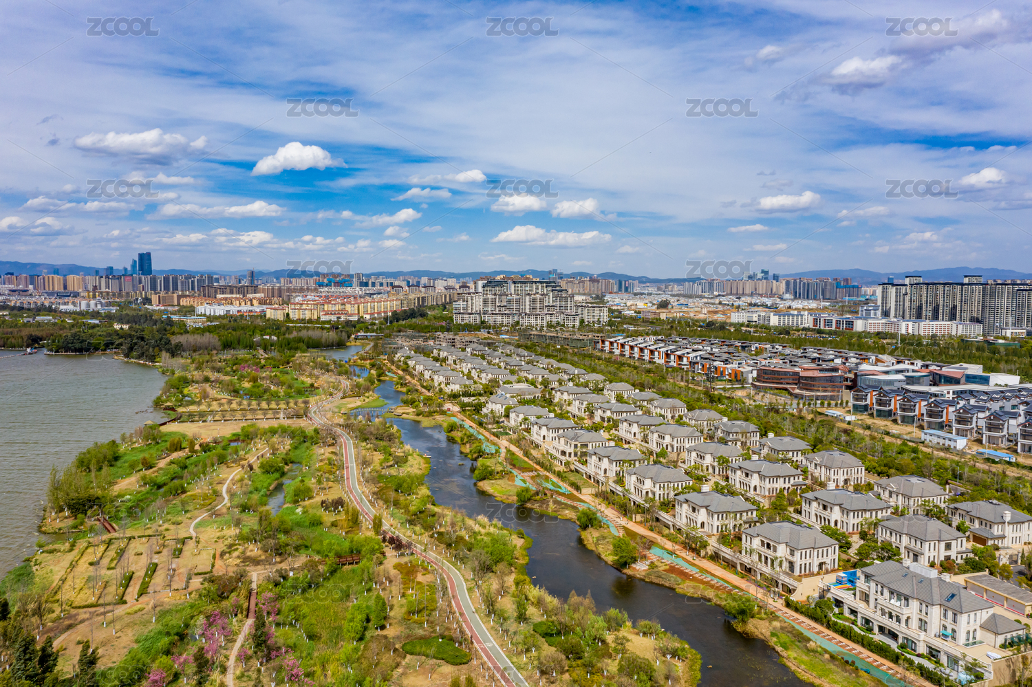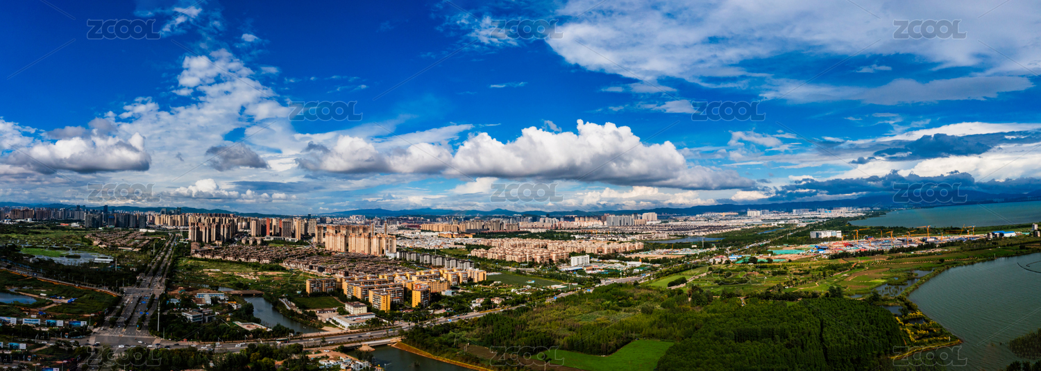 蓝天白云下的中国云南昆明城市风光