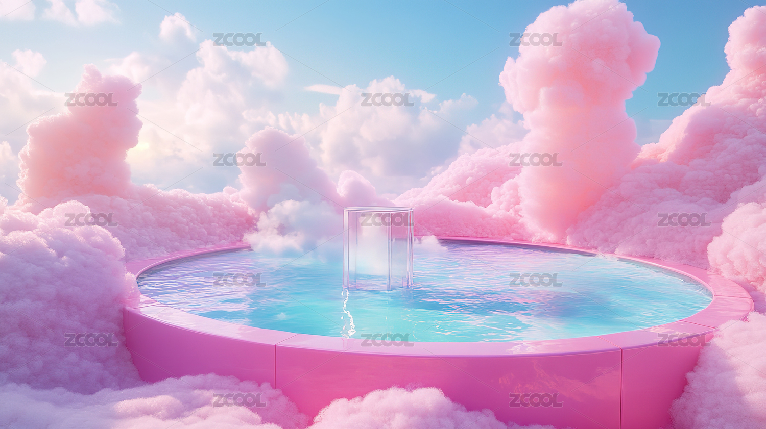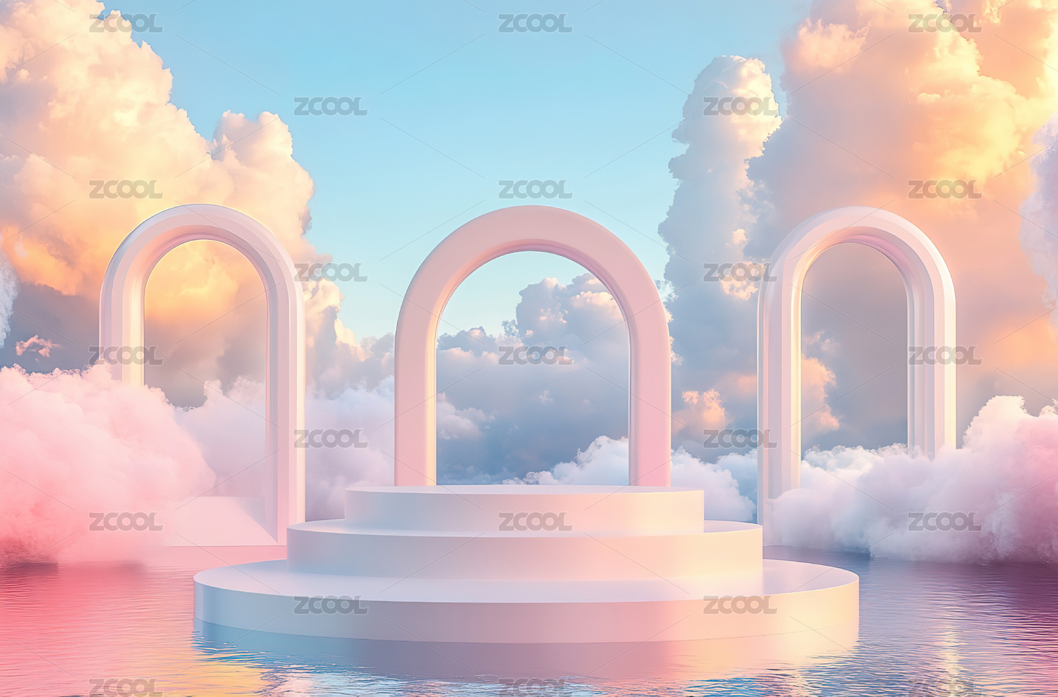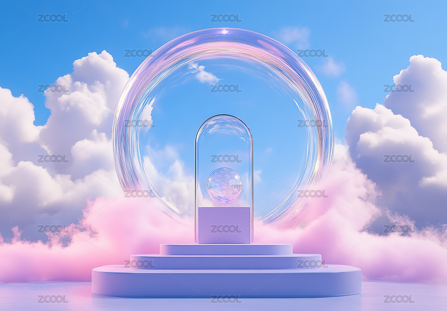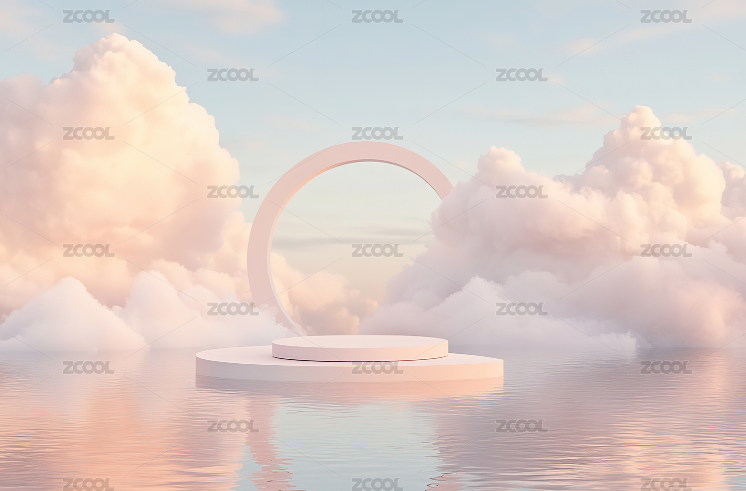 展示台,舞台,海洋,柔和,云朵,泡泡,窗口,讲台,圆形,平台