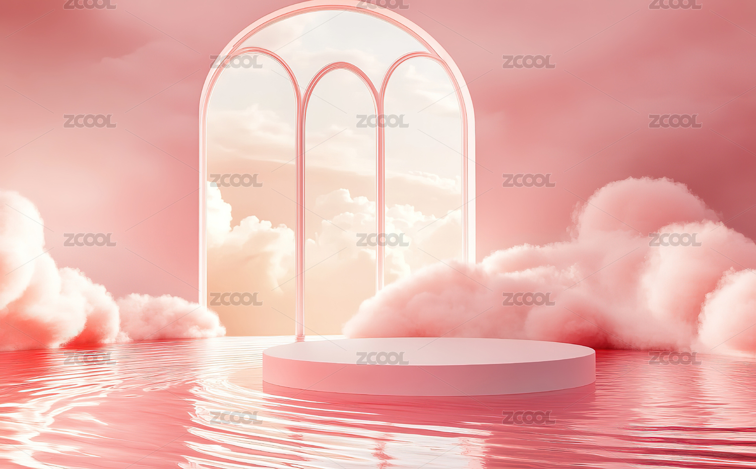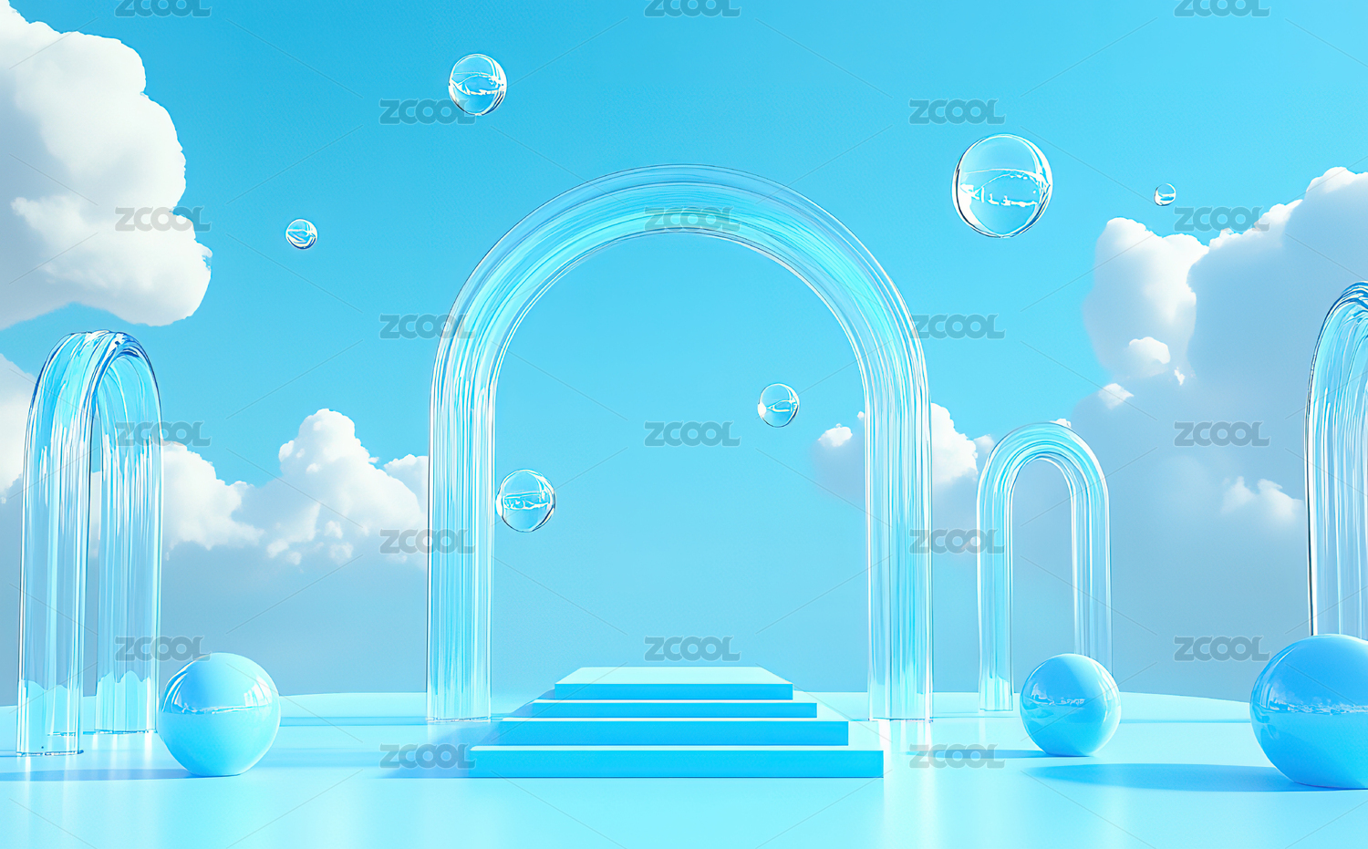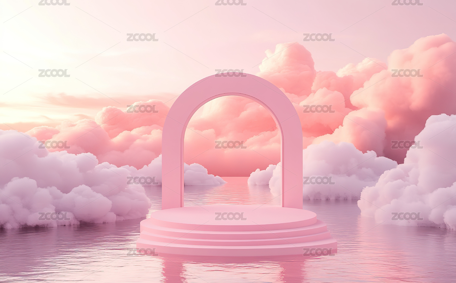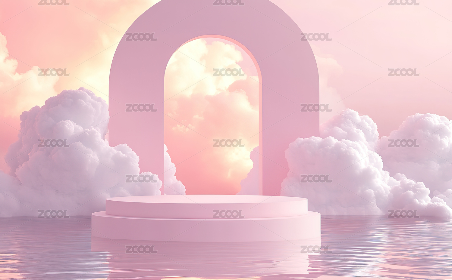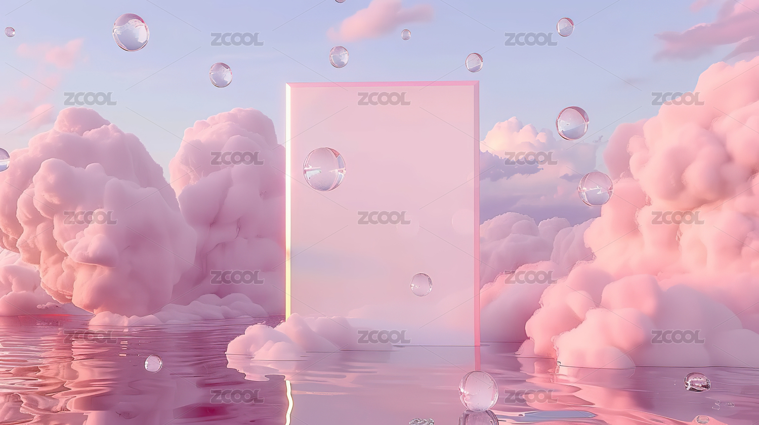 展示台,舞台,海洋,柔和,云朵,泡泡,窗口,讲台,圆形,平台