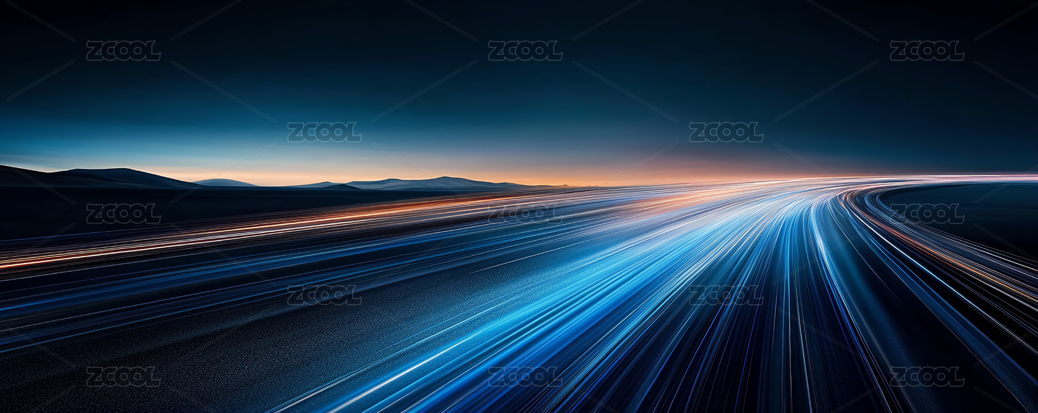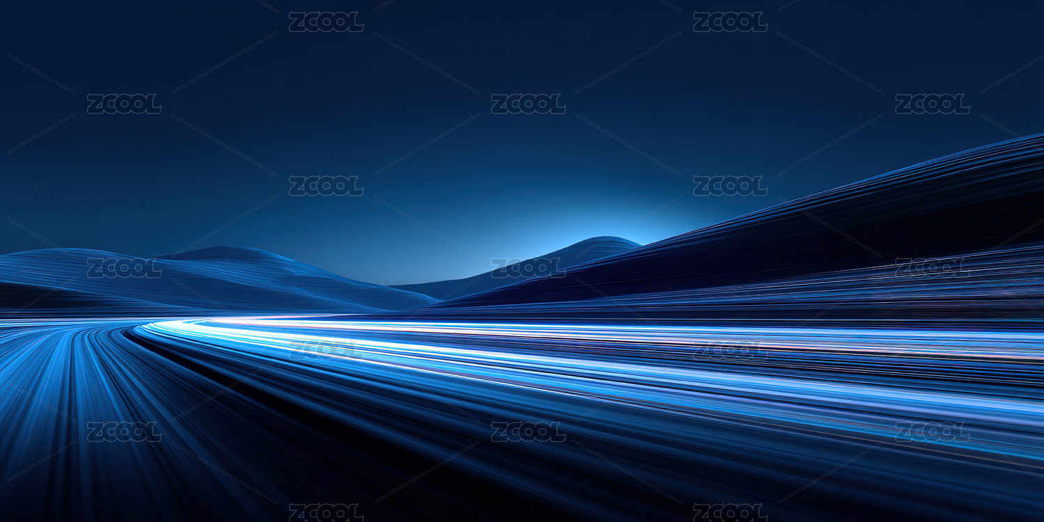 蓝色光轨车轨科技概念抽象配图