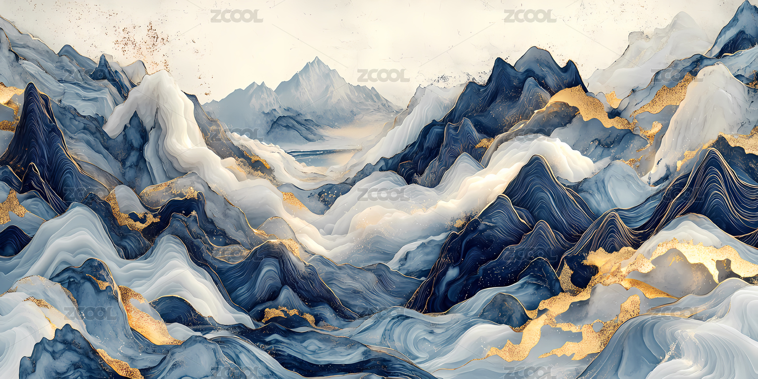 抽象蓝色山脉风景图