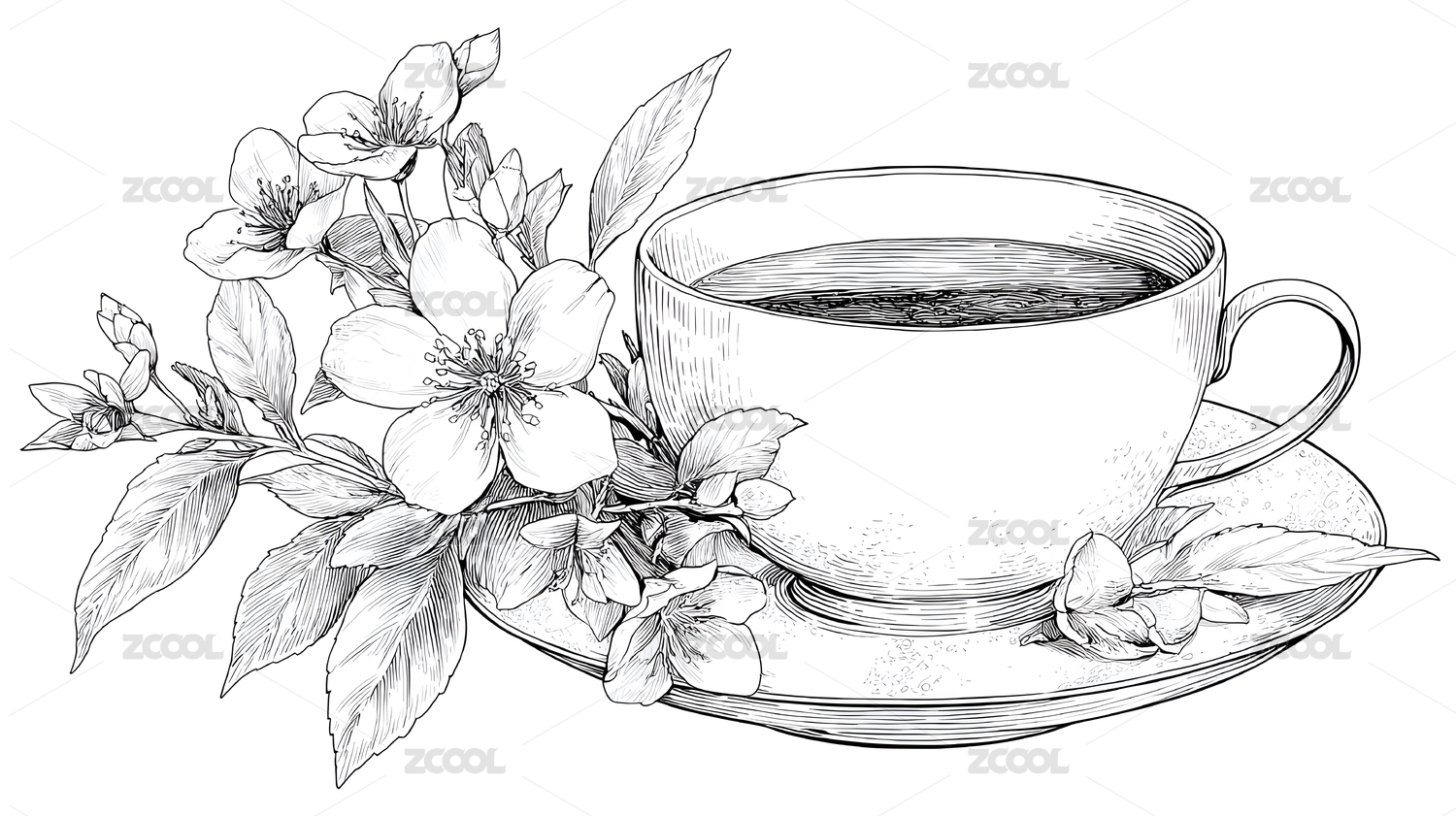 DXCZ202405,植物,花卉,复古,手绘,插画,藤曼,茶饮