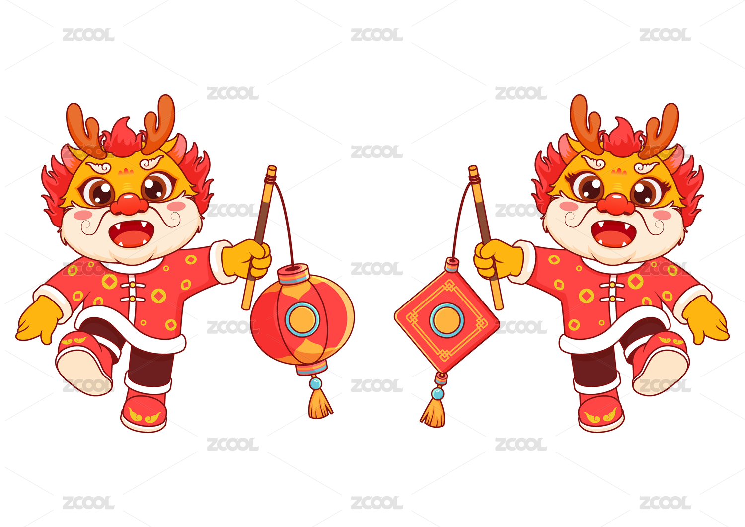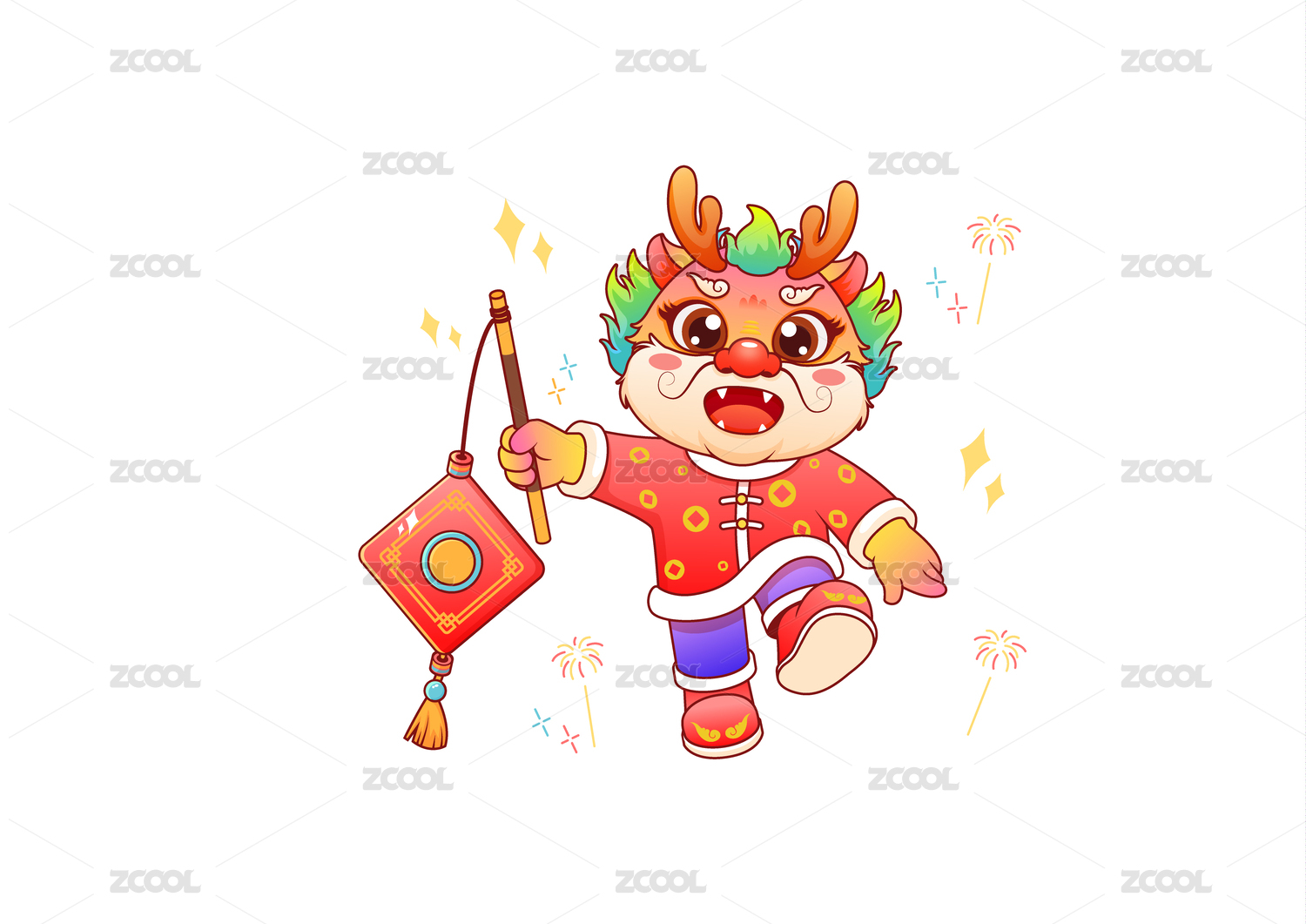 2024龙年喜庆打灯笼可爱卡通矢量形象