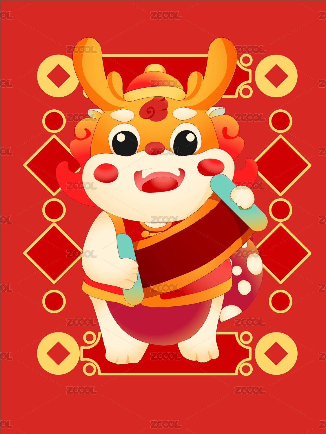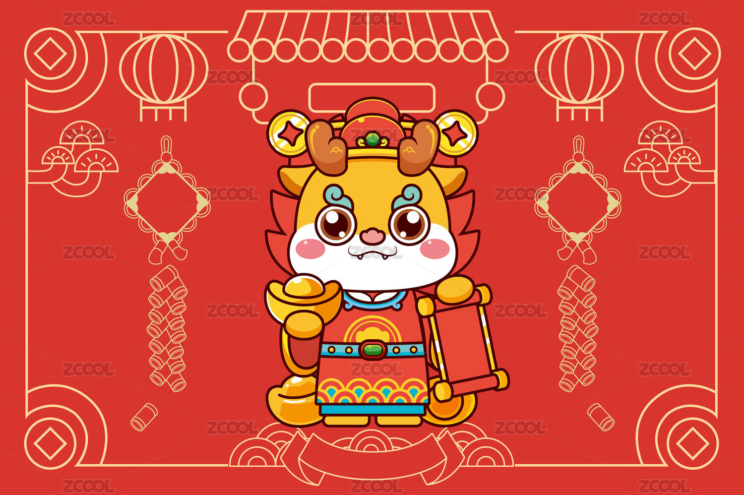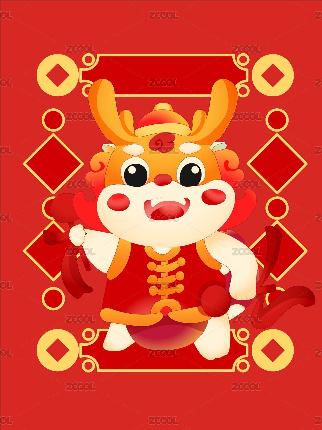 龙年卡通 龙年吉祥物 龙年国潮插画