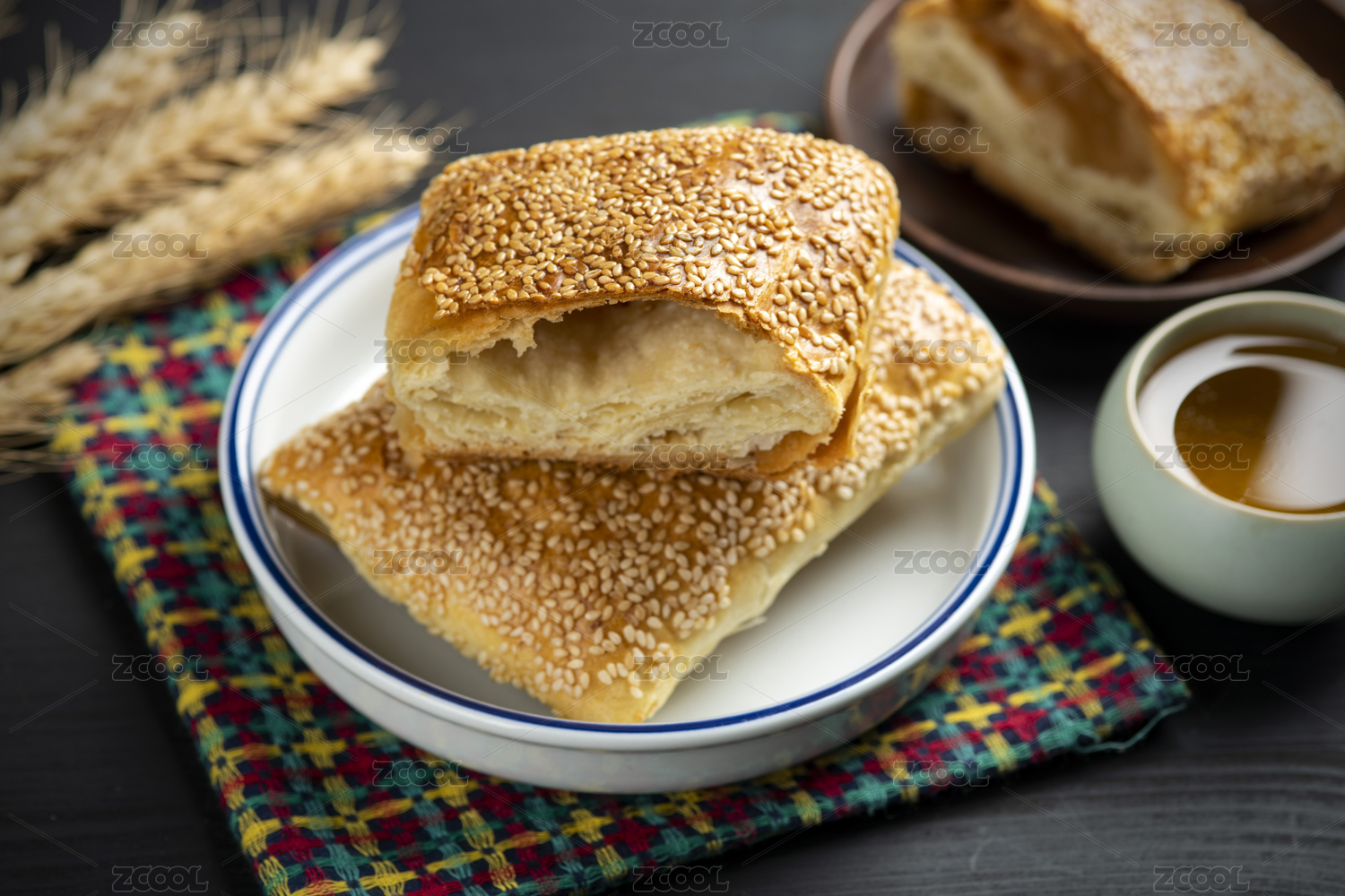 特色面食芝麻烧饼油酥烧饼摆放在黑色背景上