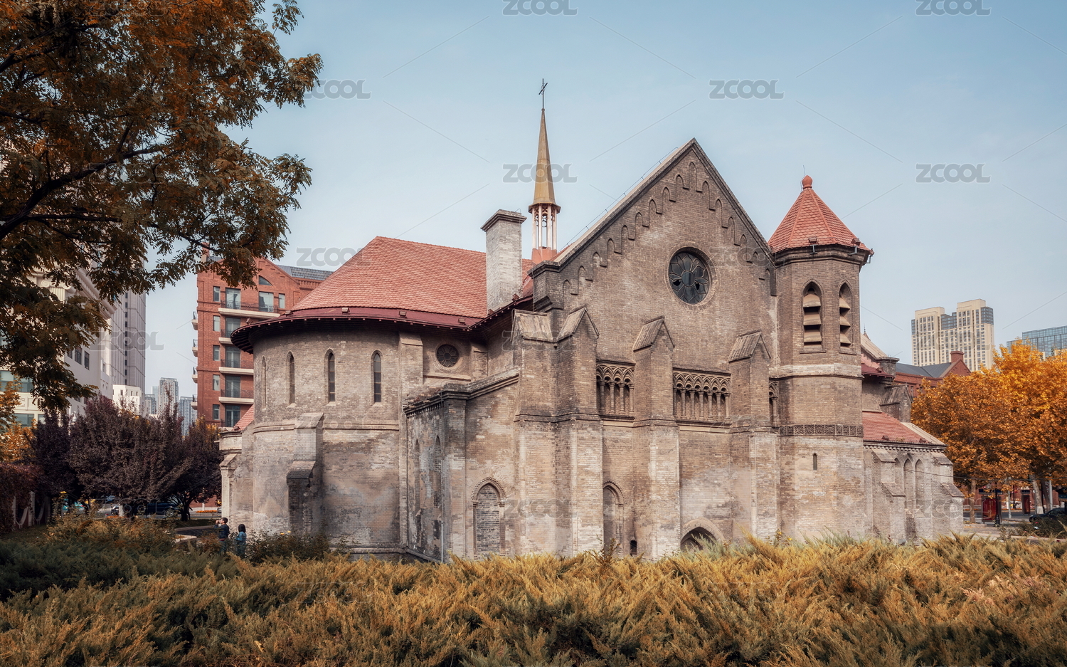 天津秋天阳光下的安里甘教堂