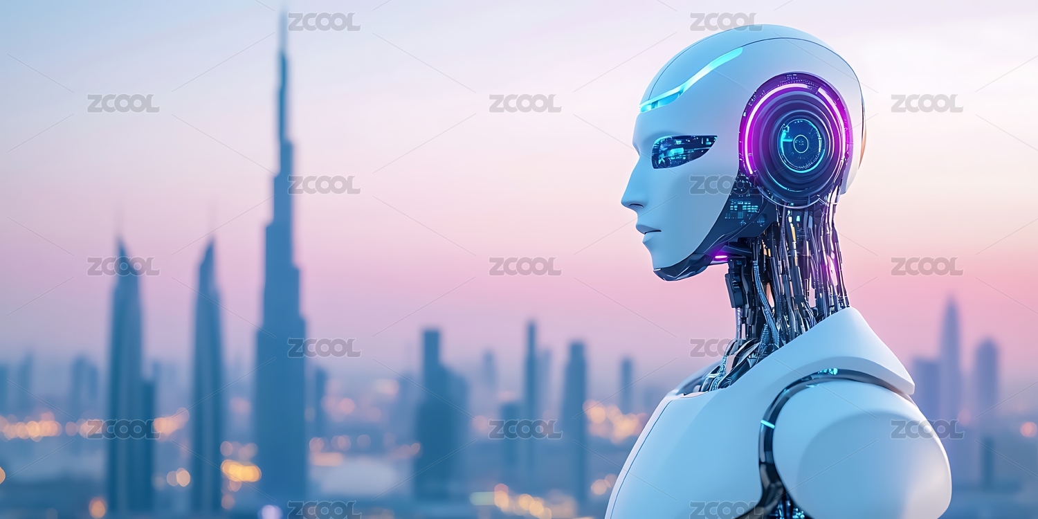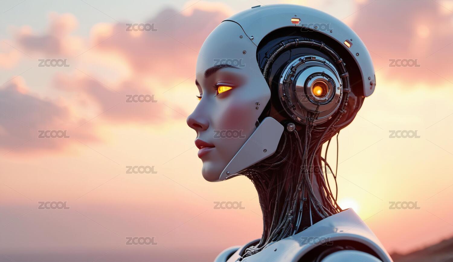 夕阳,黄昏,金色,天空,云彩,城市,科技,未来,机器人,人工智能