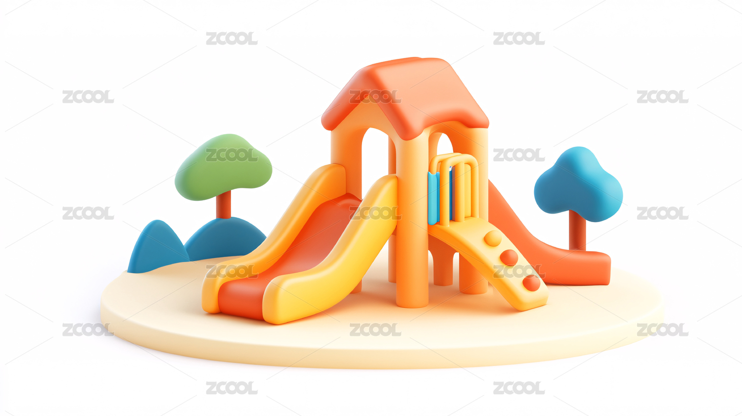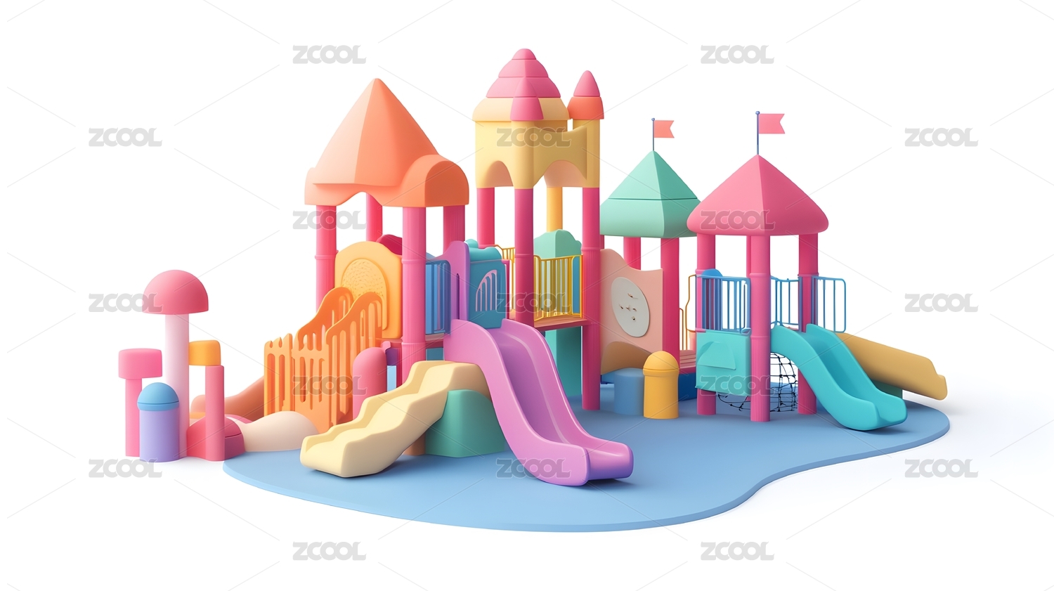 六一儿童节亲子乐园儿童游乐场童年3D插画