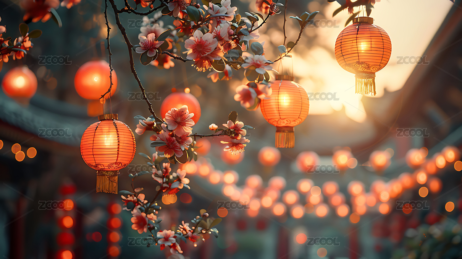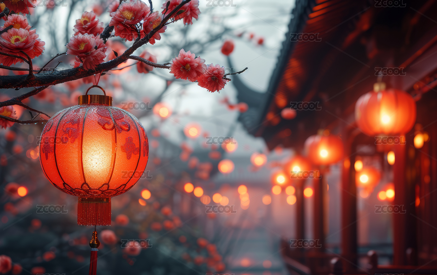 国风,水墨,中国,插画,喜庆,红色,古风,中式,建筑,旅游