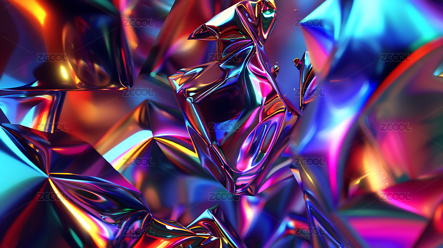 数码全息粉色皱褶铝箔抽象图形海报网页背景