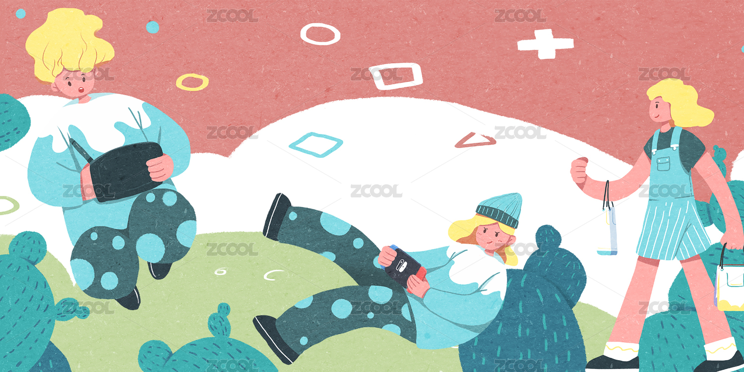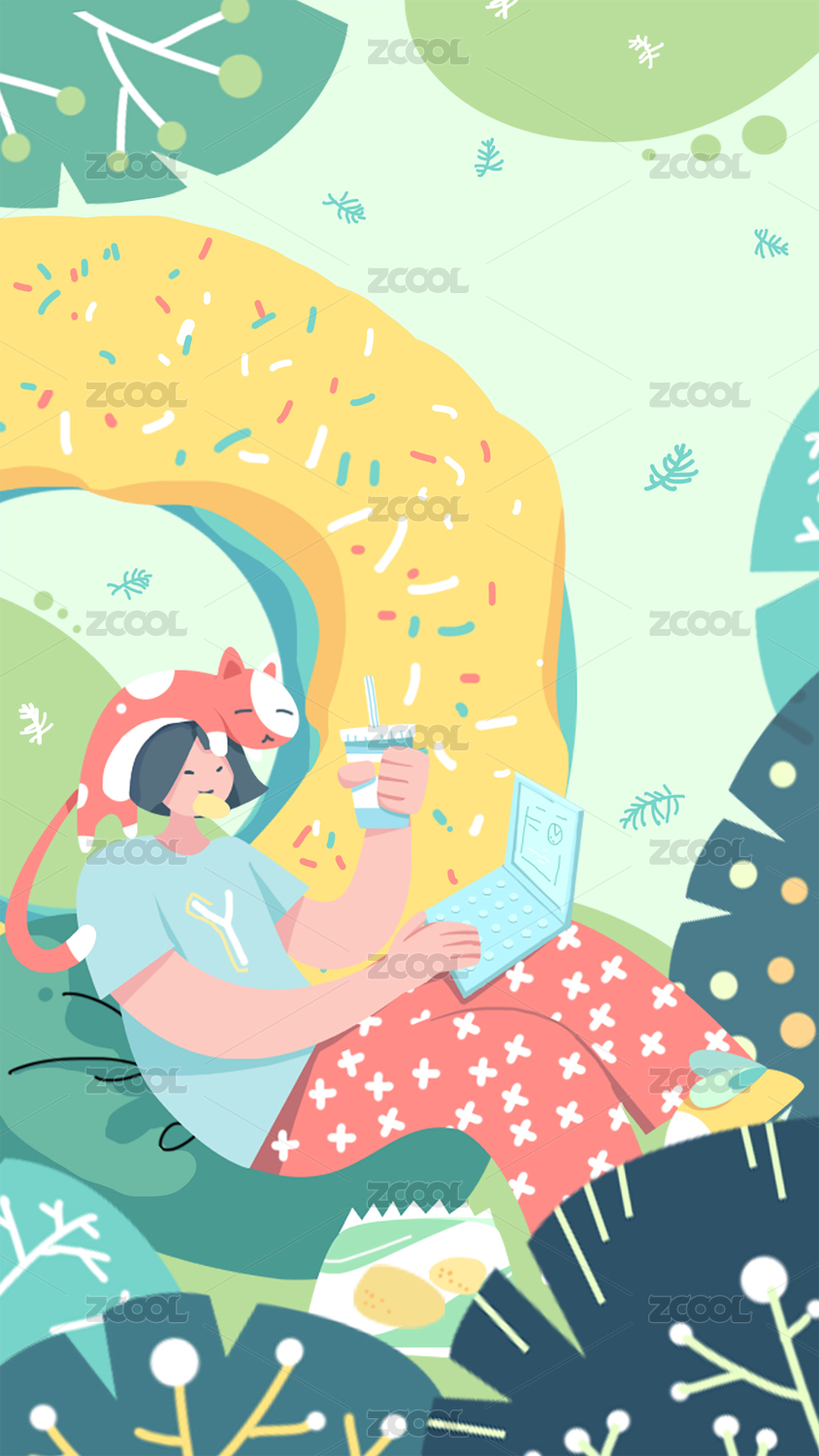 扁平,开屏,轻松,假期,游戏,植物,工作,女孩