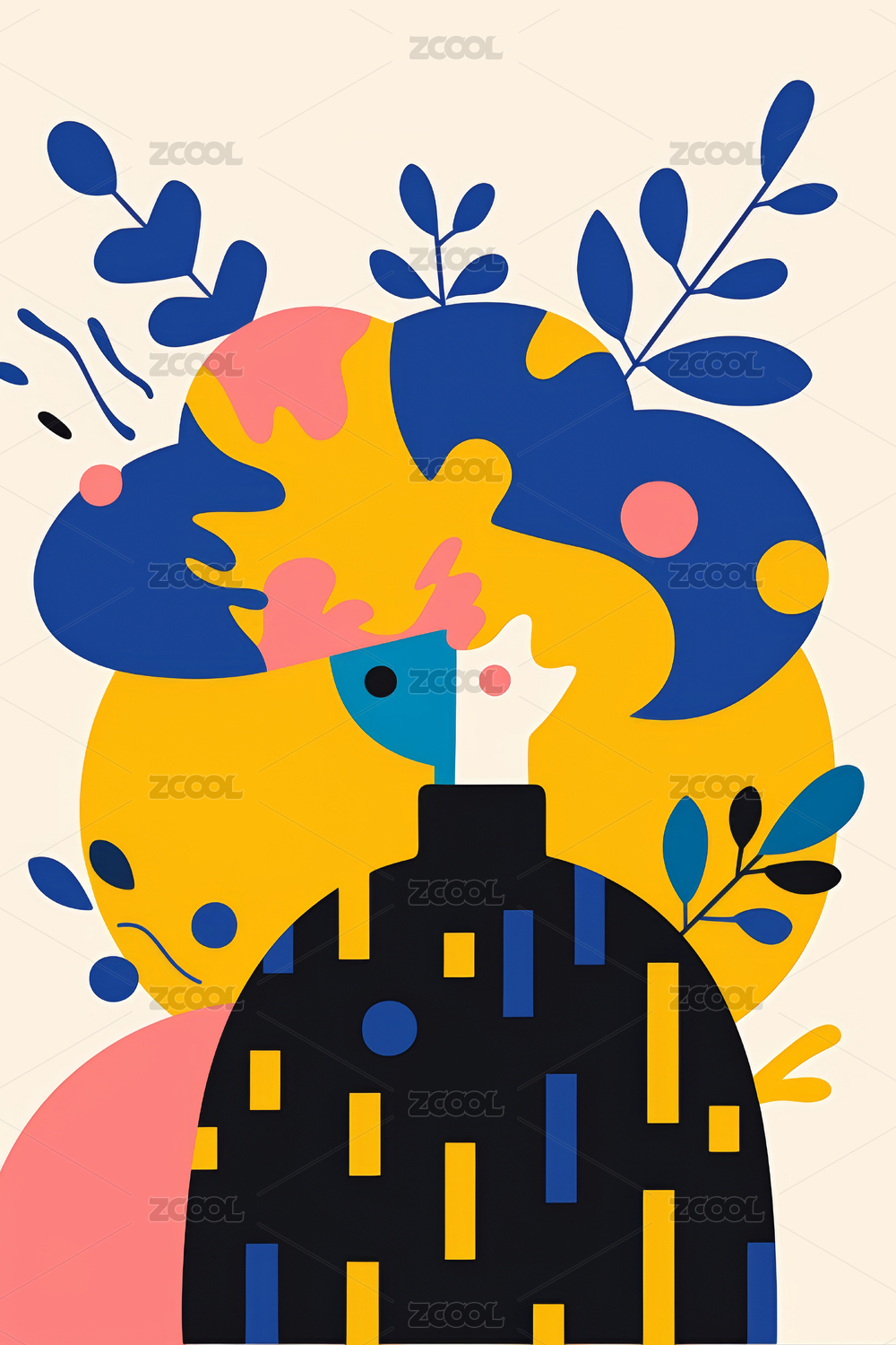 抽象艺术几何图形人物自然户外插画