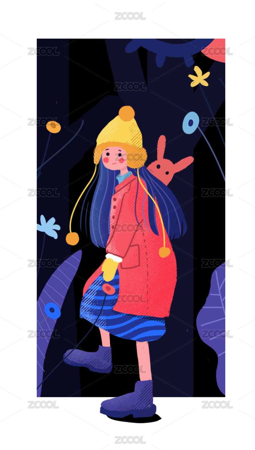扁平风少女插画
