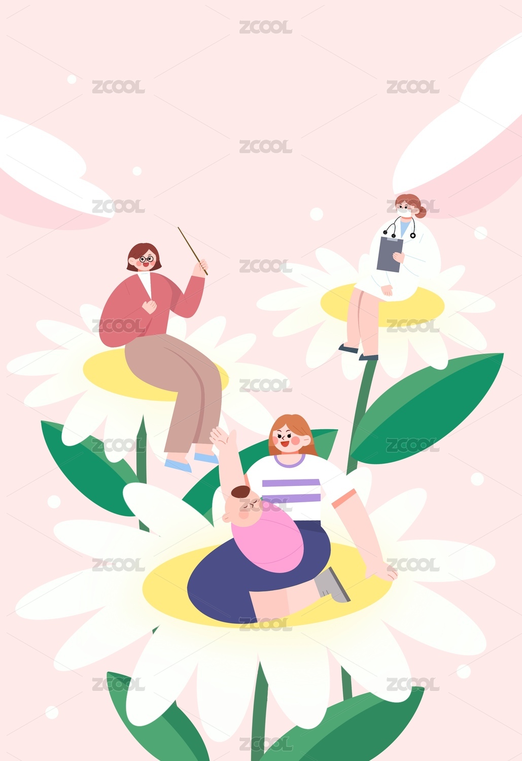职业女性人物母亲节妇女节群像插画