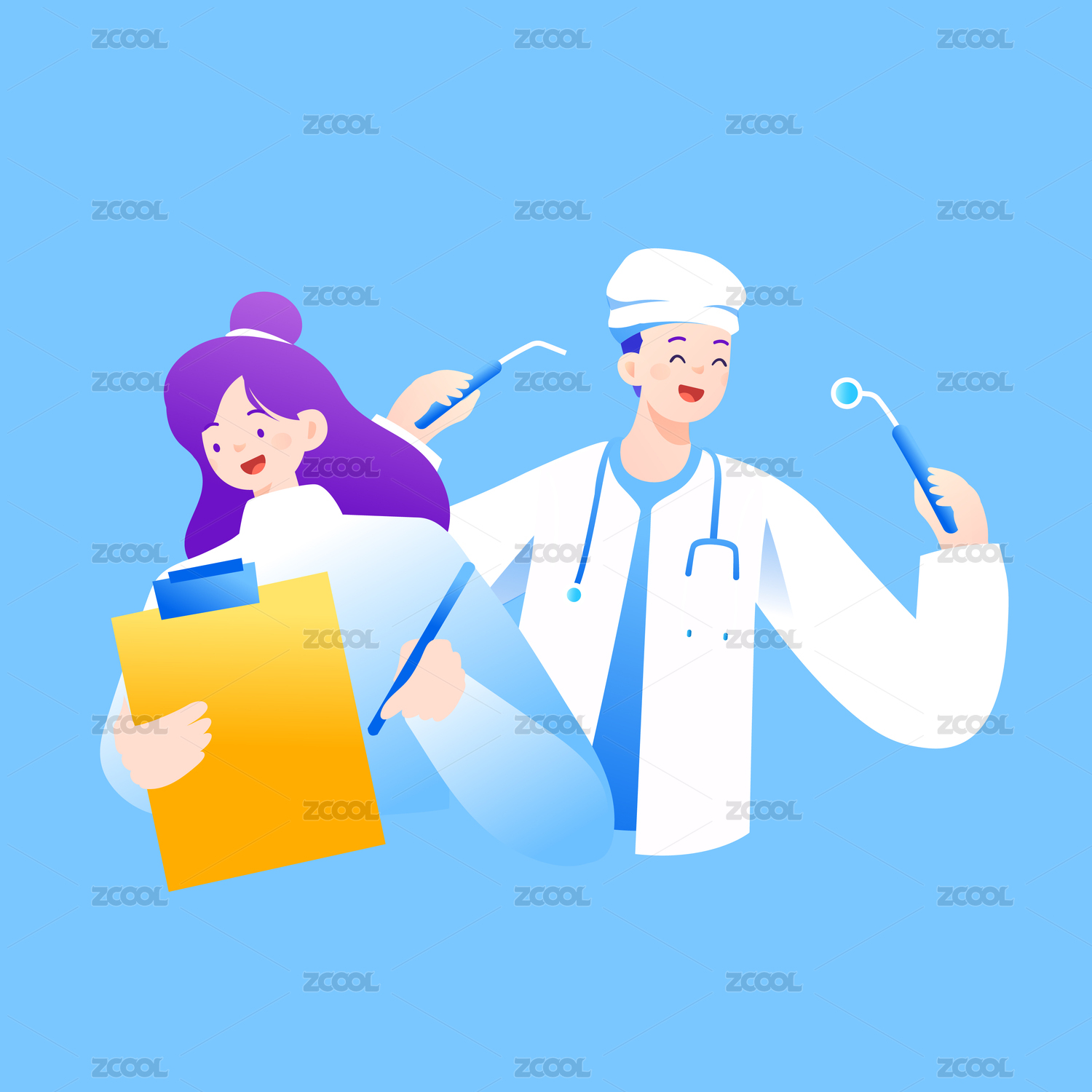 女医生,医院,医治,男医生,医疗,插画,矢量
