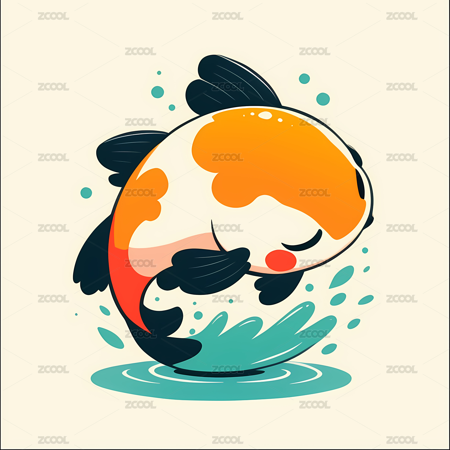 可爱锦鲤3d形象新年跳跃鲤鱼国风三维插画