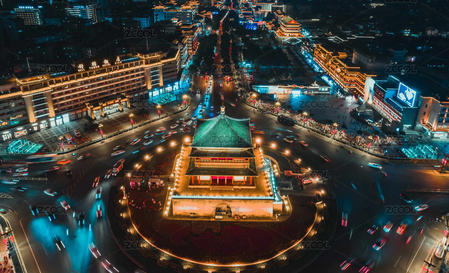 航拍西安大雁塔大唐不夜城城市风光夜景