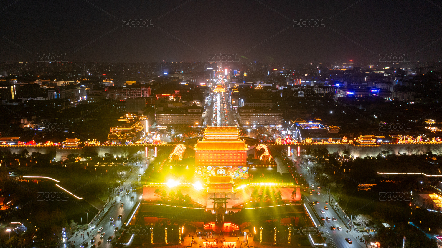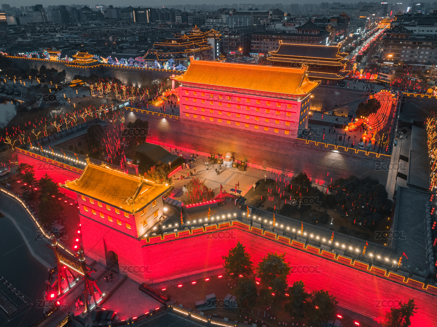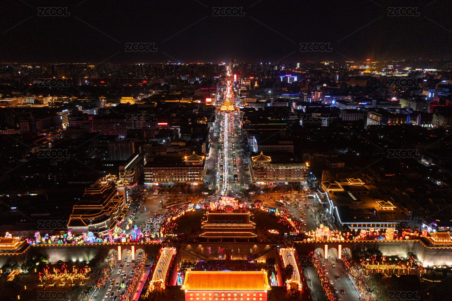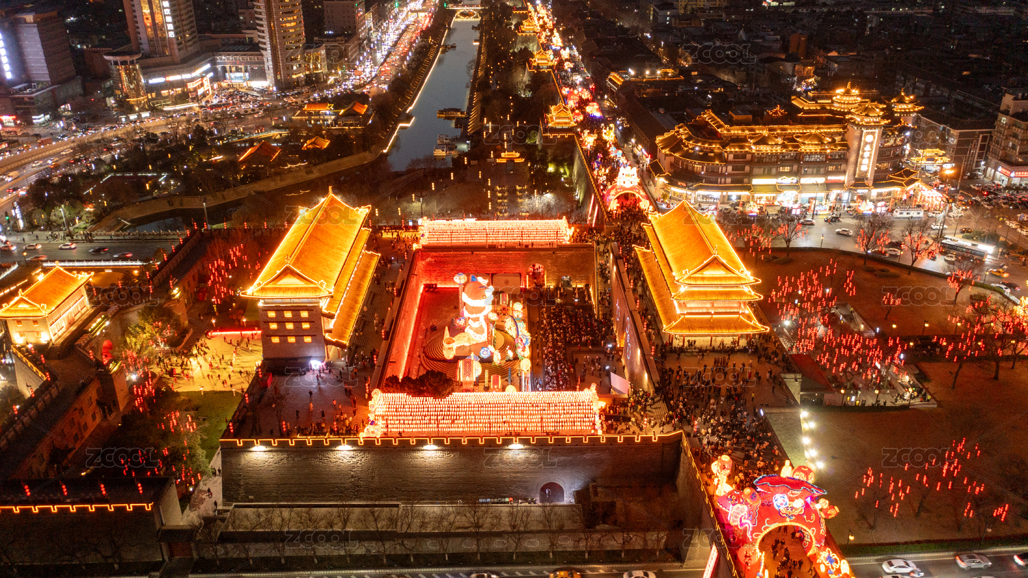 航拍,安徽省,寿县,古城,新年,新春,龙灯,夜景