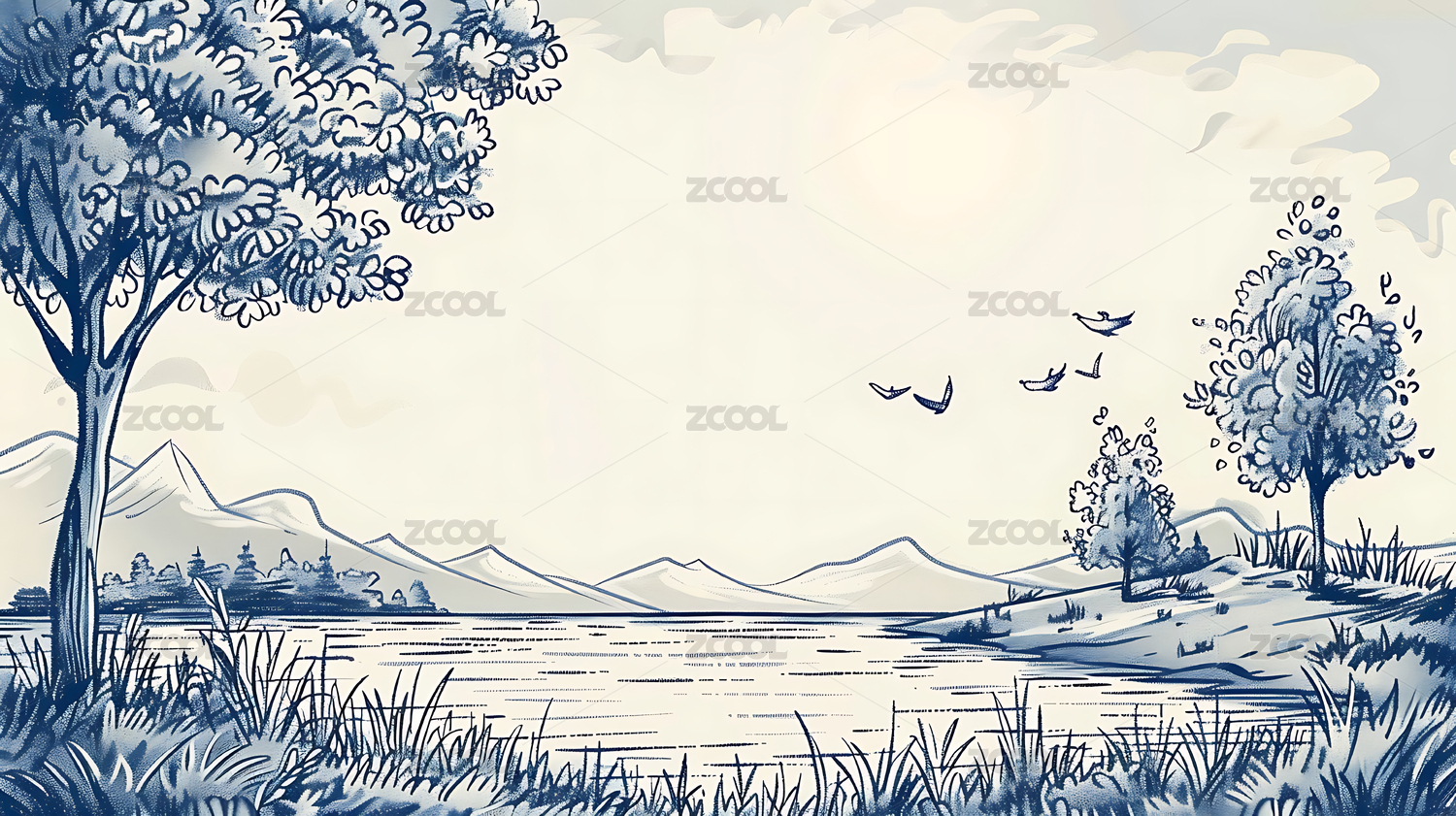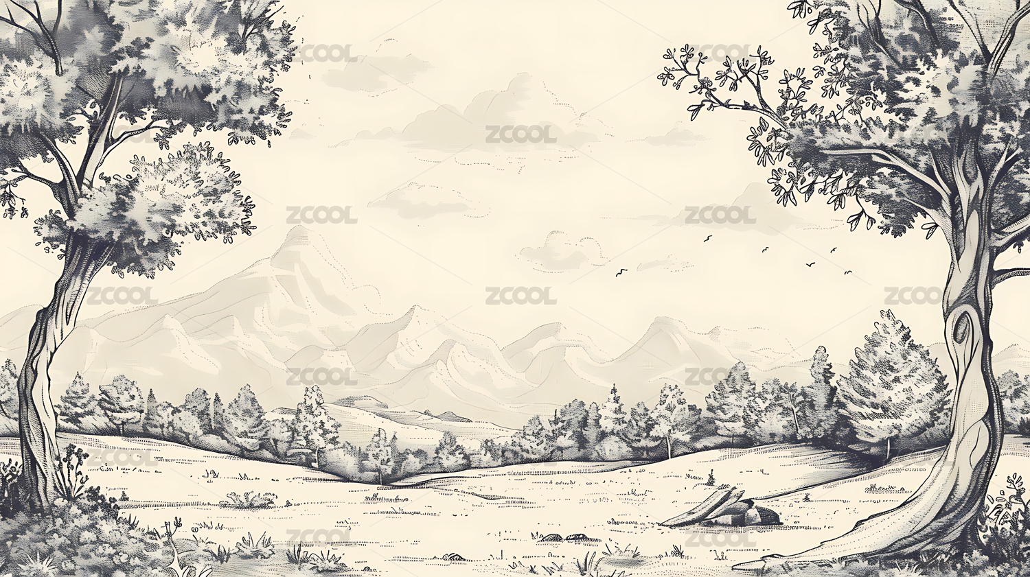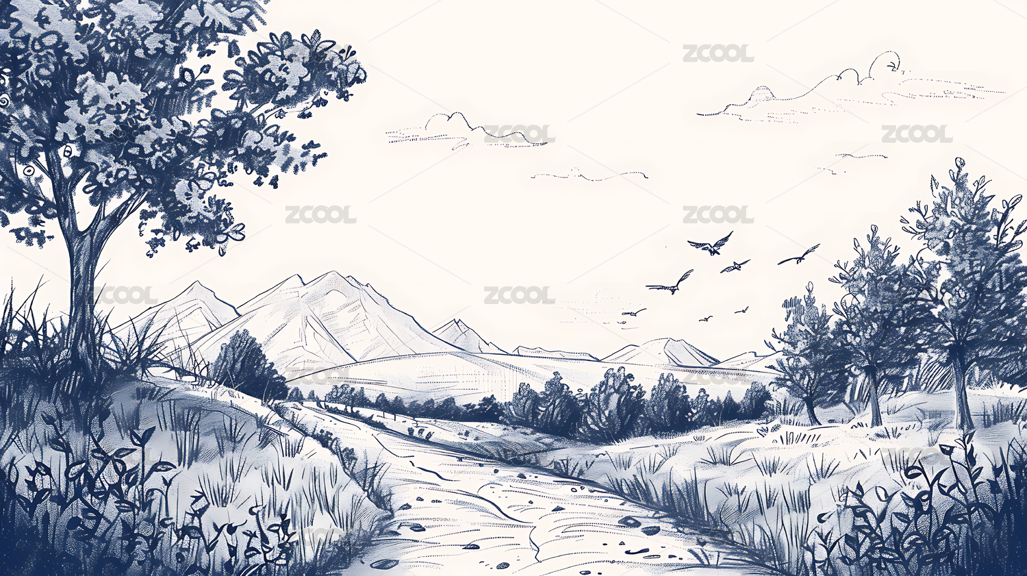 线稿,风景,插画,版画,黑白,线条,手稿,自然,风光