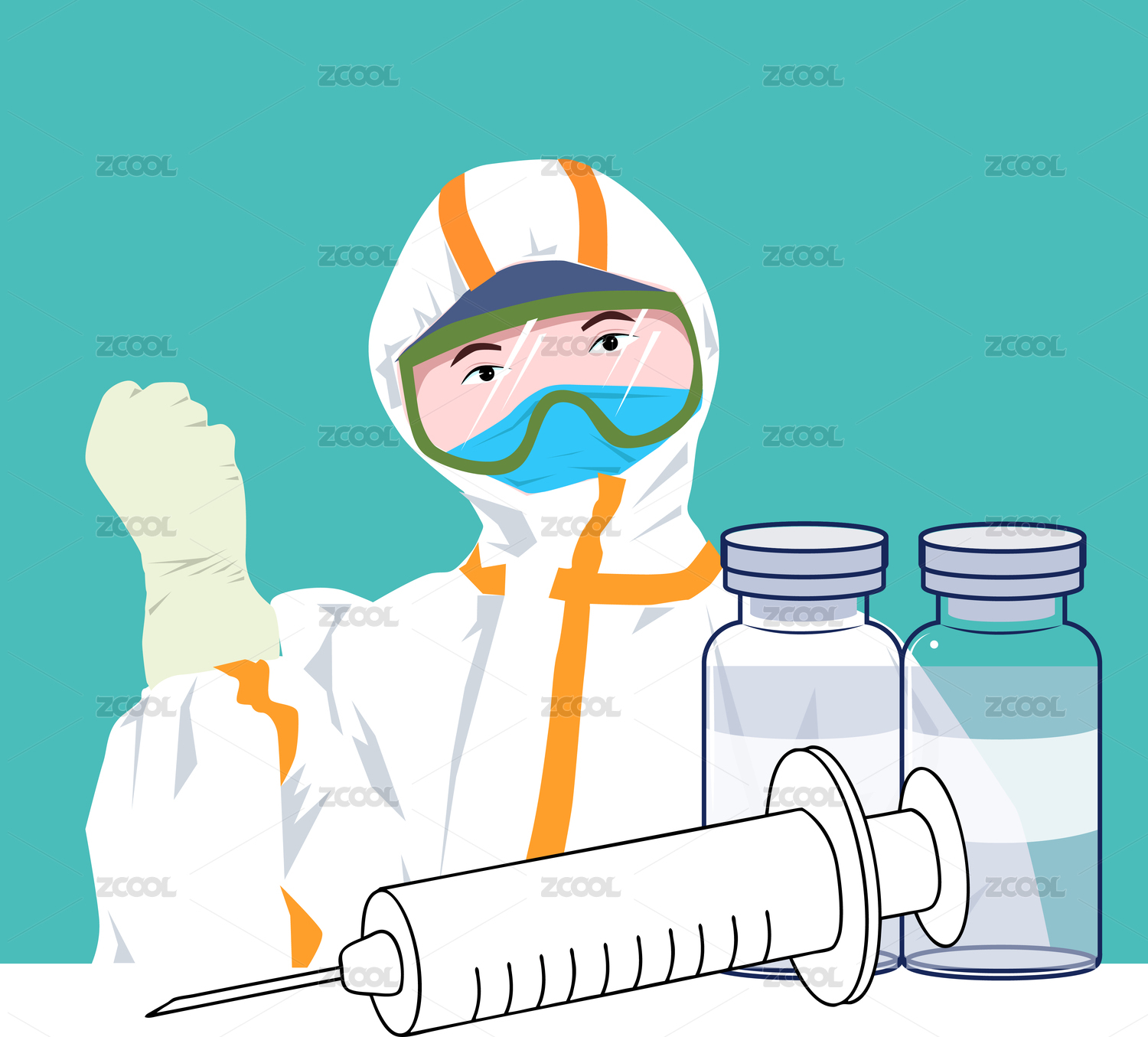 疫情防疫抗疫医卡通医护拿着盾牌疫苗