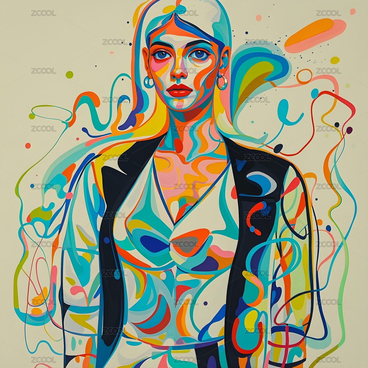 时尚,美女,插画,绘画,抽象,色彩,服饰