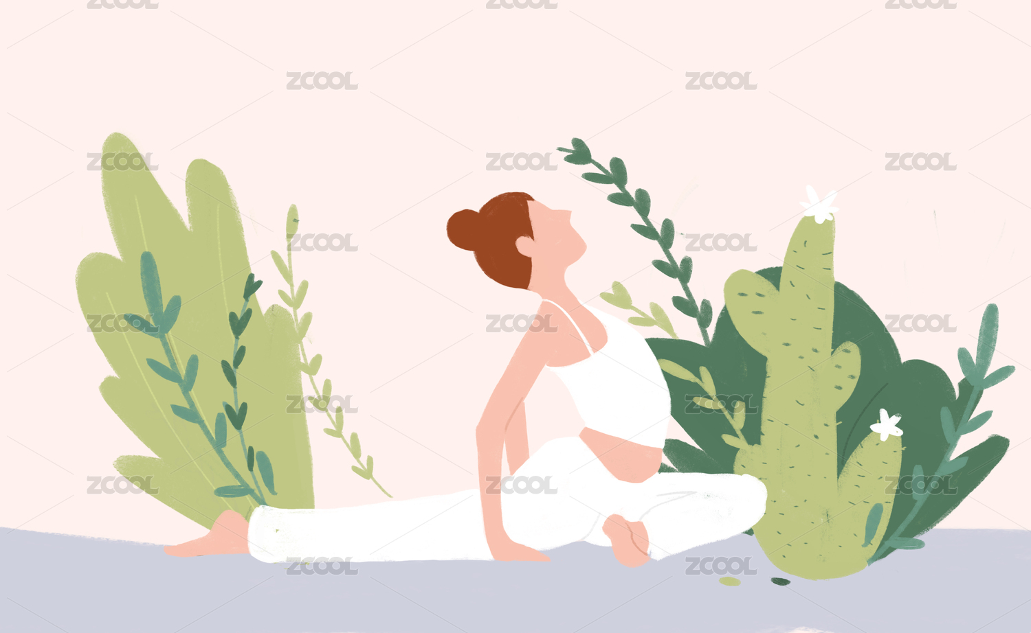 休闲瑜伽普拉提健身运动矢量扁平插画