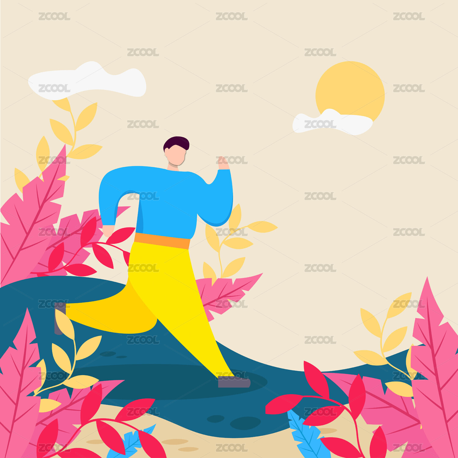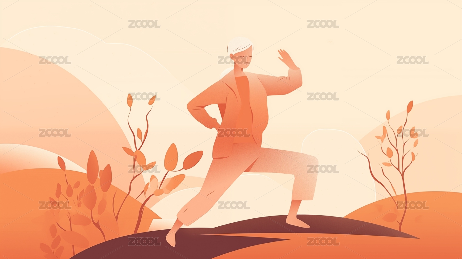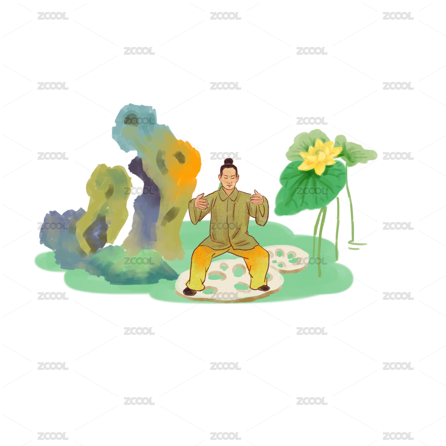 小清新,运动,插画,太极拳,养生,健身,健康,打太极,插图,中国风