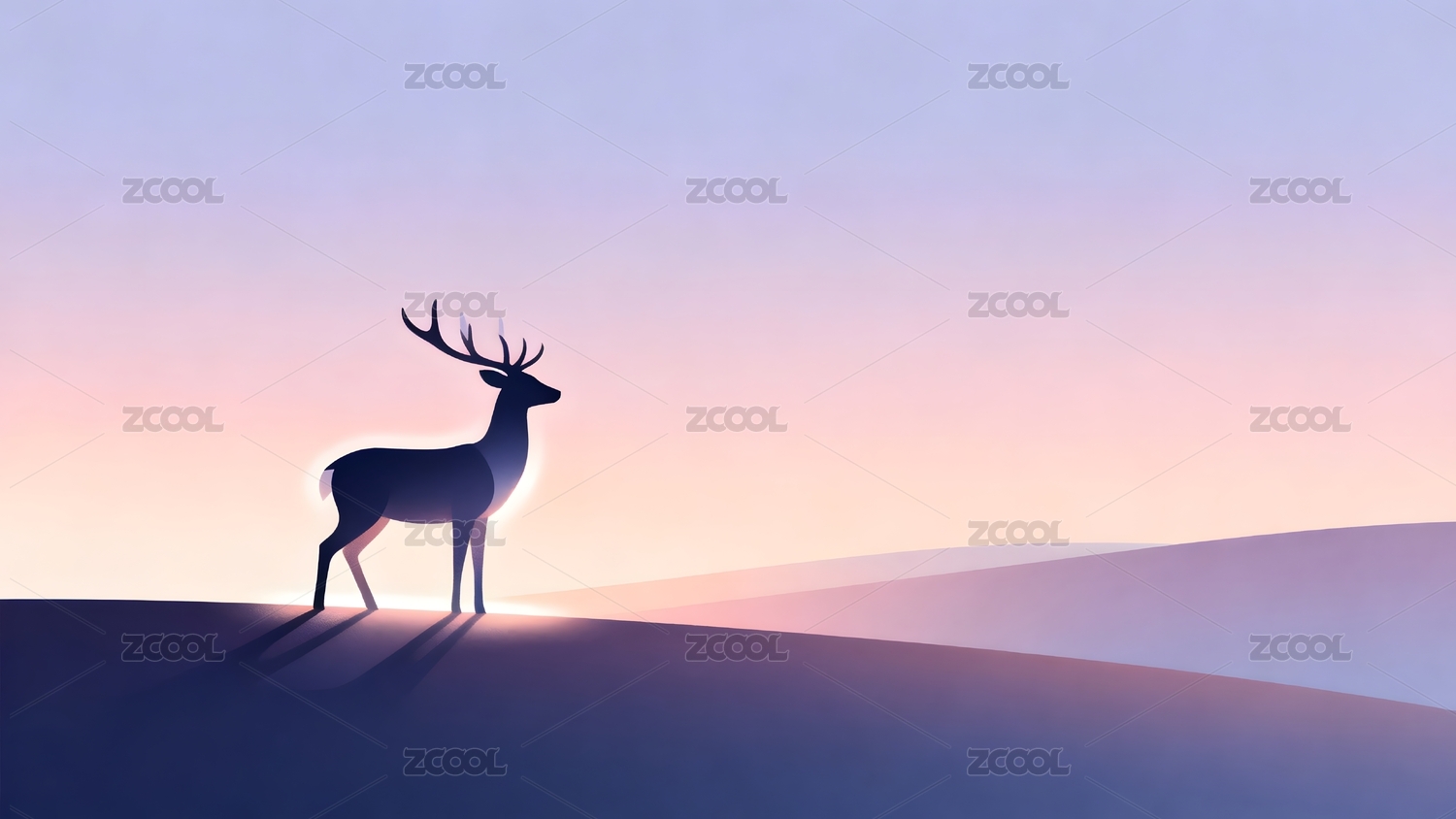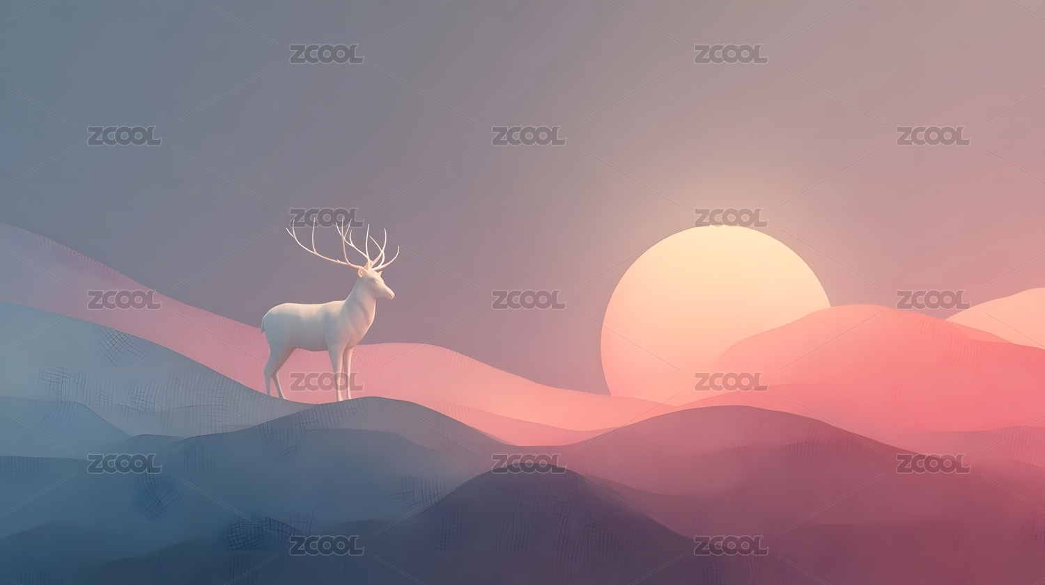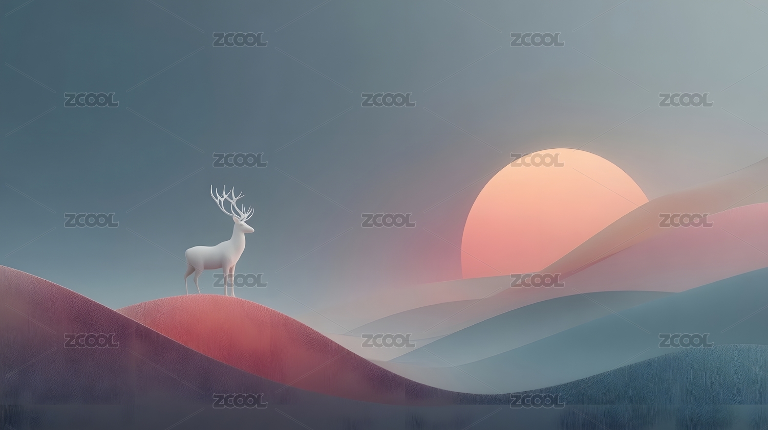 3D渲染国潮风插画梦幻唯美发着光的神鹿