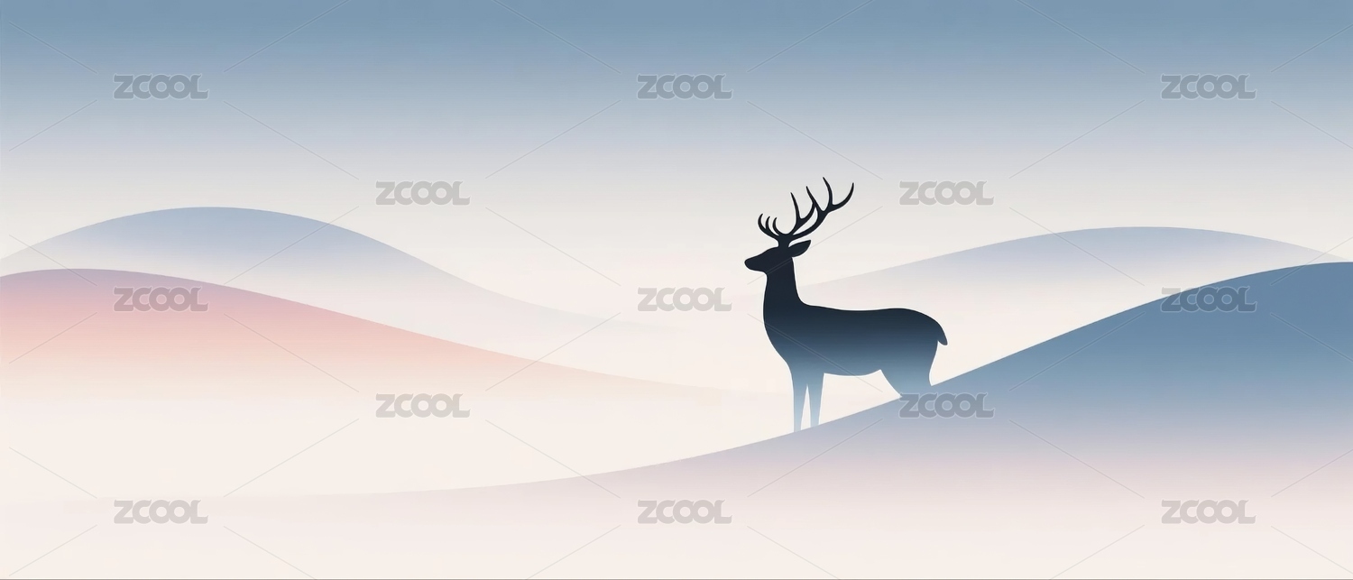 3d唯美风格冬季雪景一只鹿站在雪地里