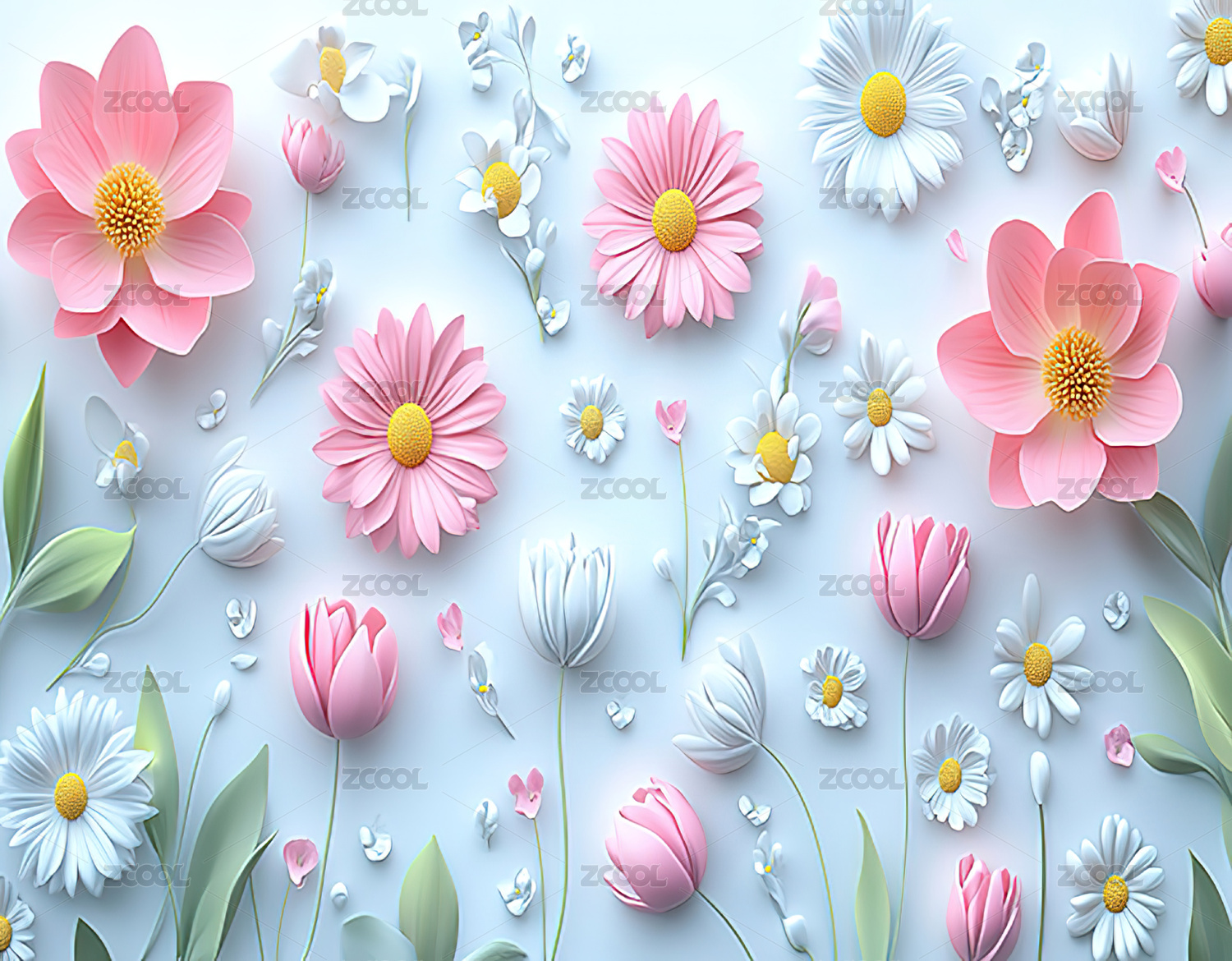 3D剪纸国潮风格粉色花卉花朵背景素材