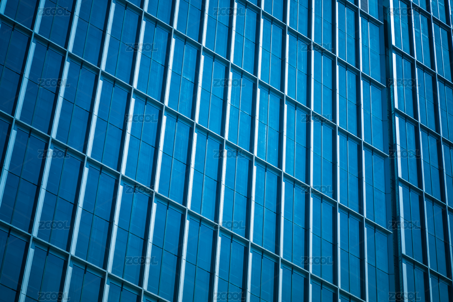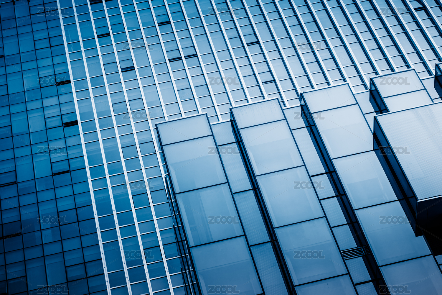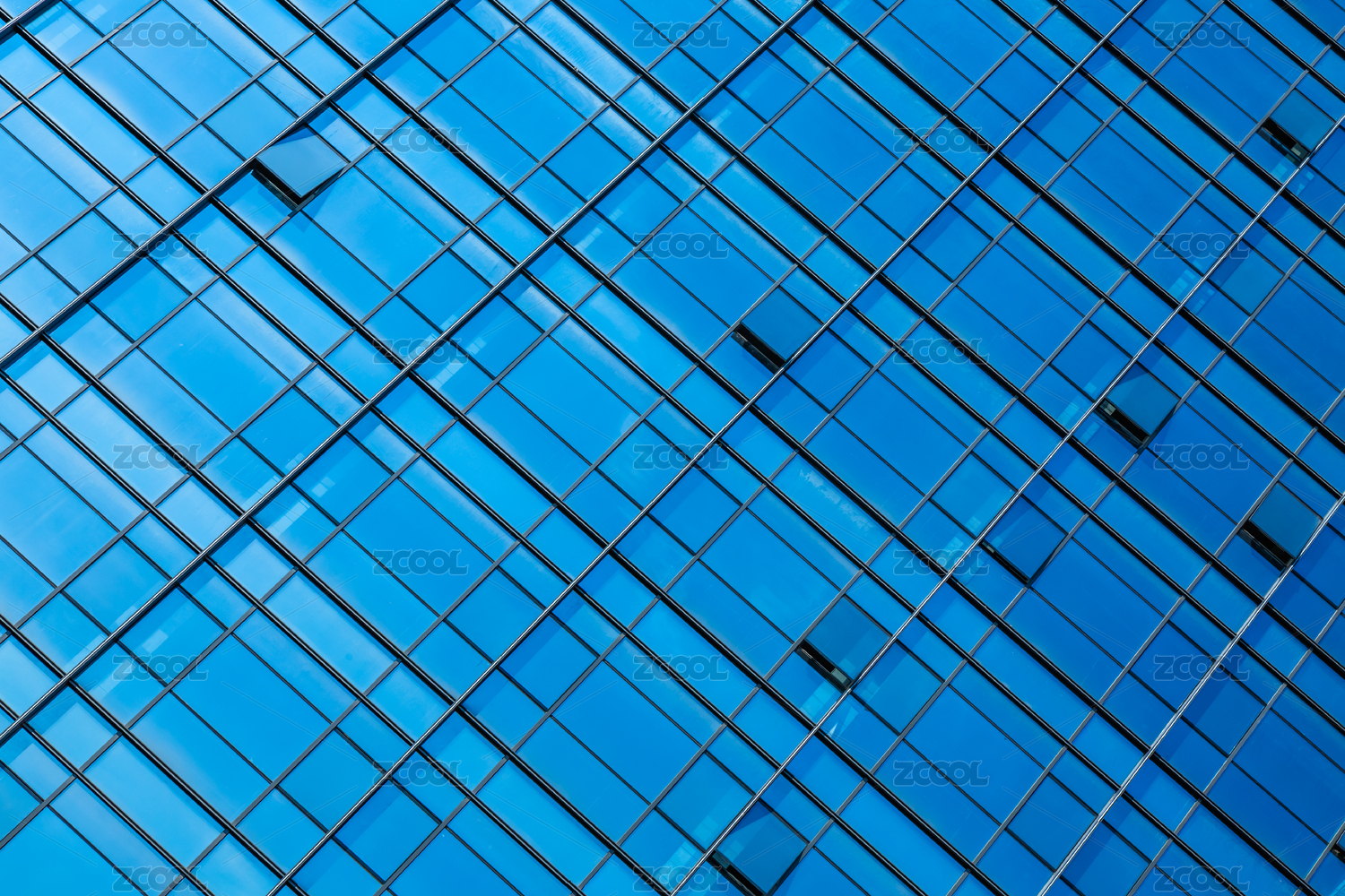 抽象的建筑摩天大楼的蓝色玻璃墙