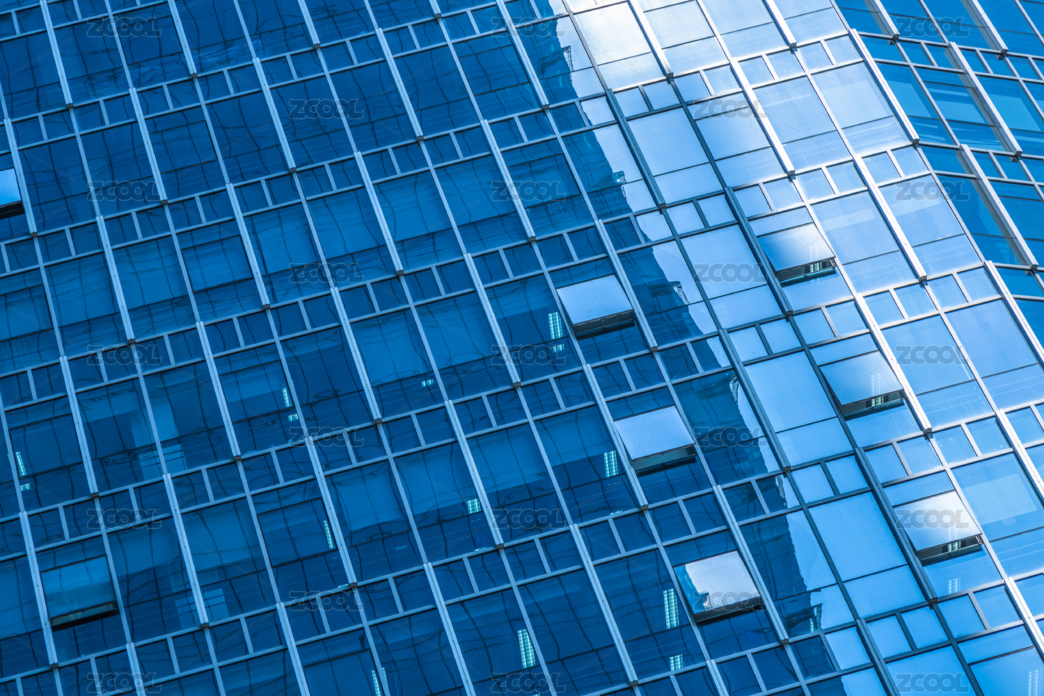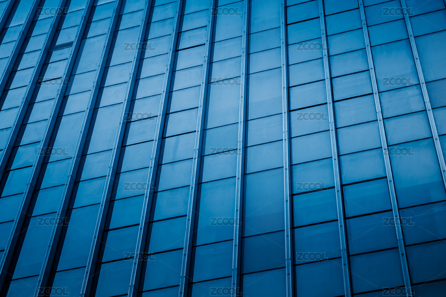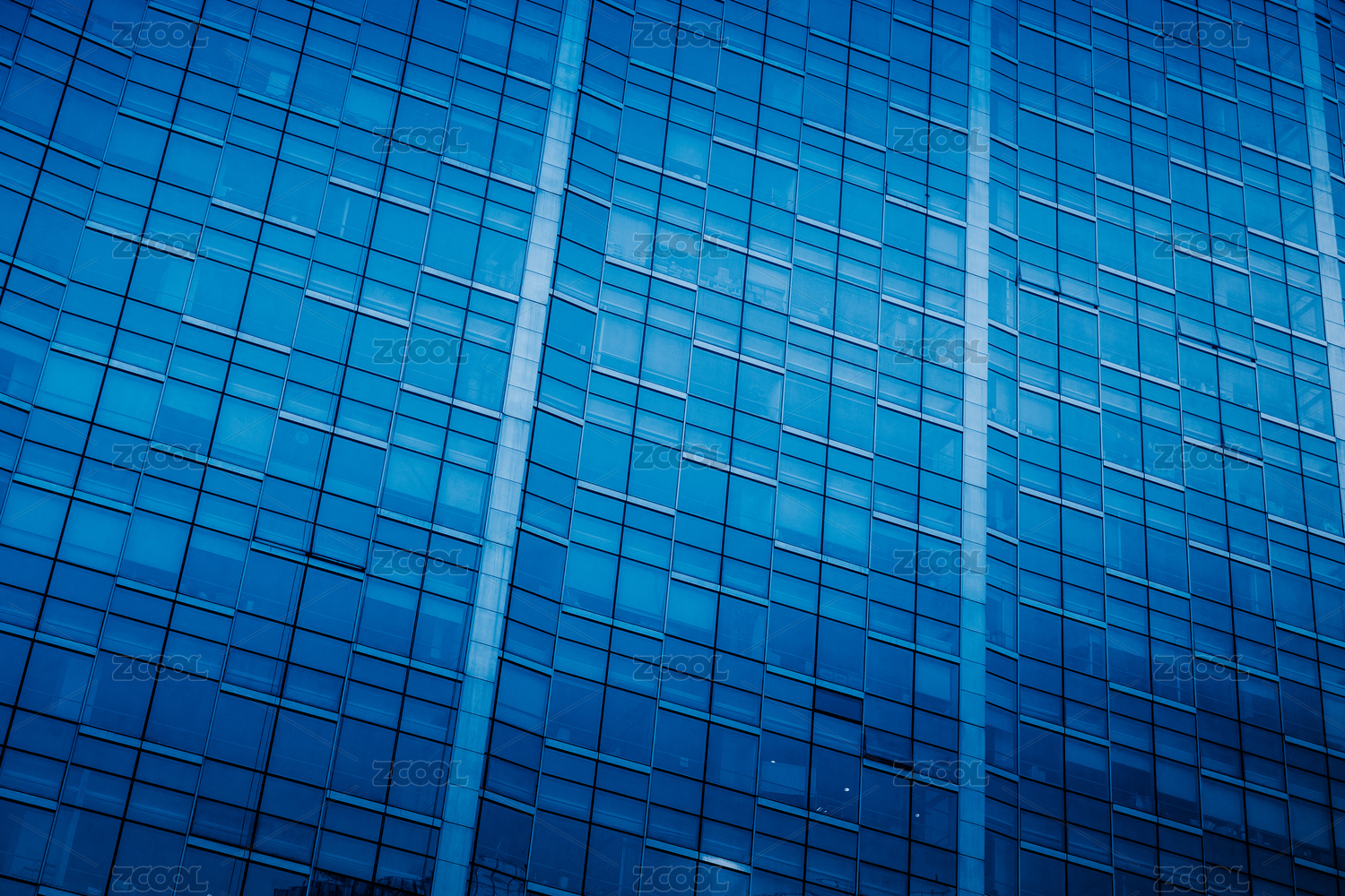 抽象的建筑摩天大楼的蓝色玻璃墙