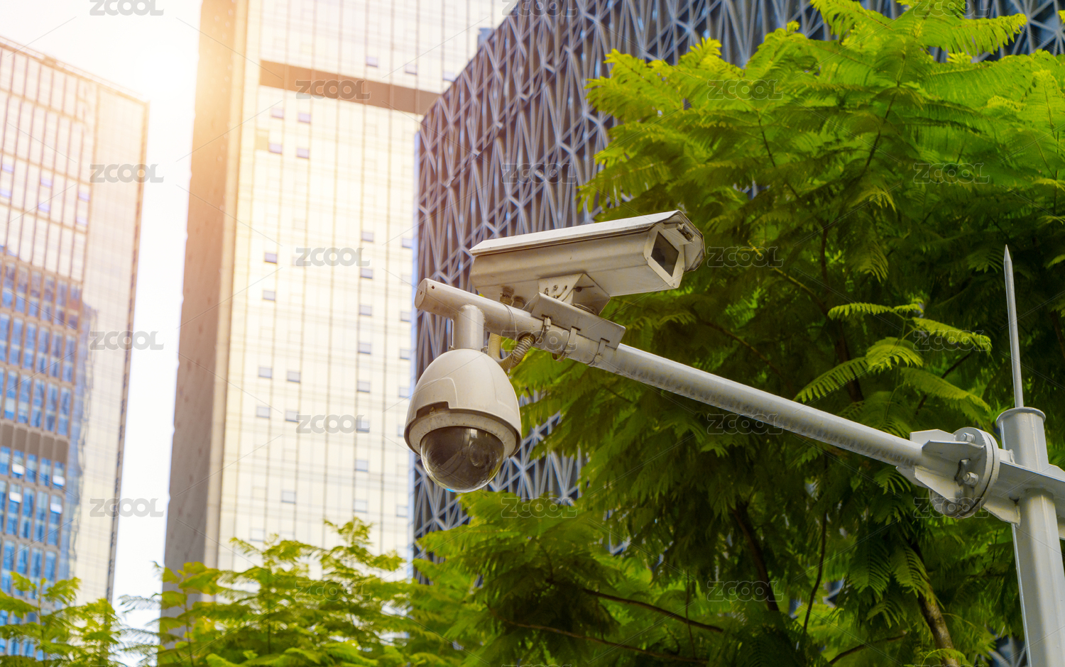 办公楼前的监控摄像头特写