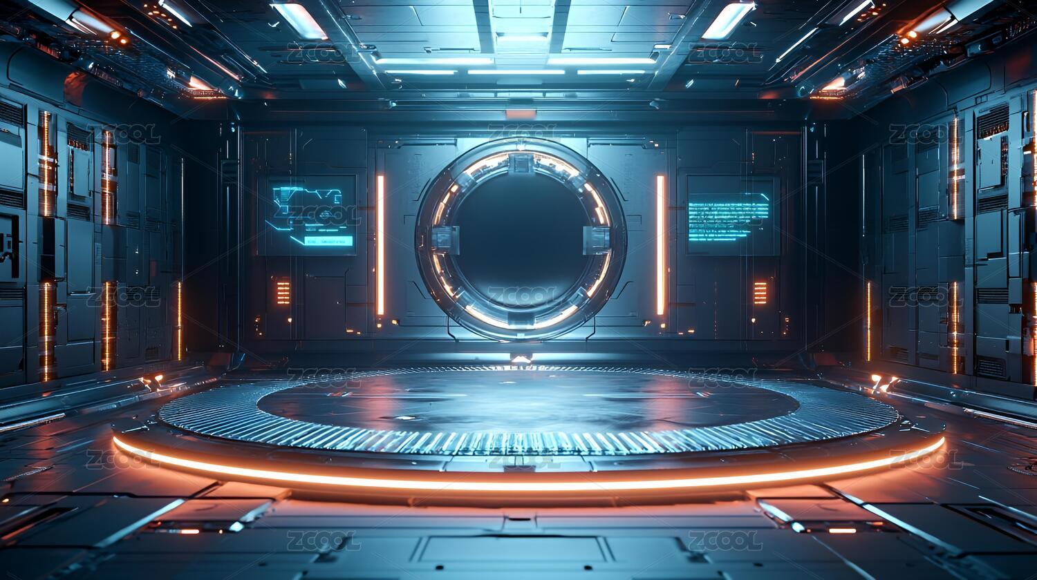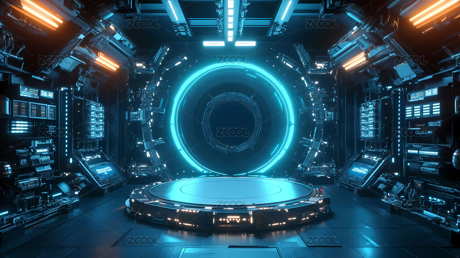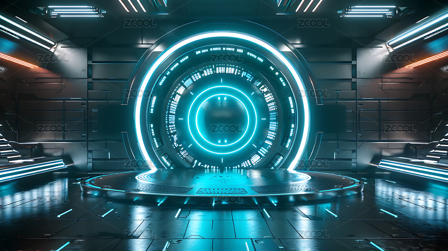 产品展台,发光,科技,圆形,蓝色,背景,未来,现代,光,概念