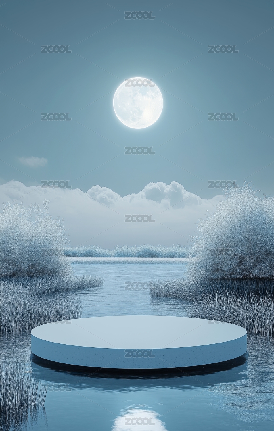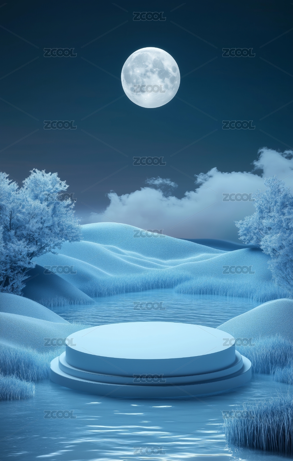 蓝色,户外,植物,圆形,电商,产品展台,水,月亮,背景,湖