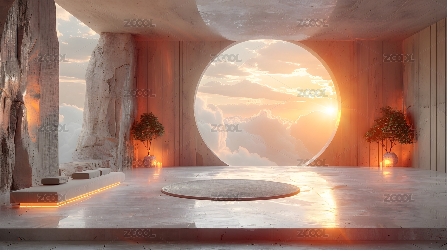 展示台,展示,电商,场景,背景,三维,金色,华丽,水面,洞穴