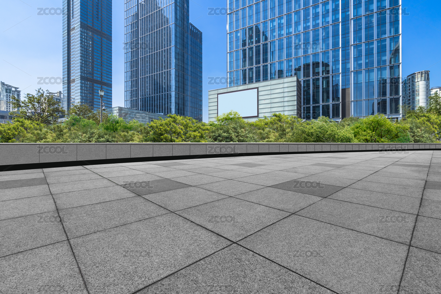 空的地板广场和城市建筑风光