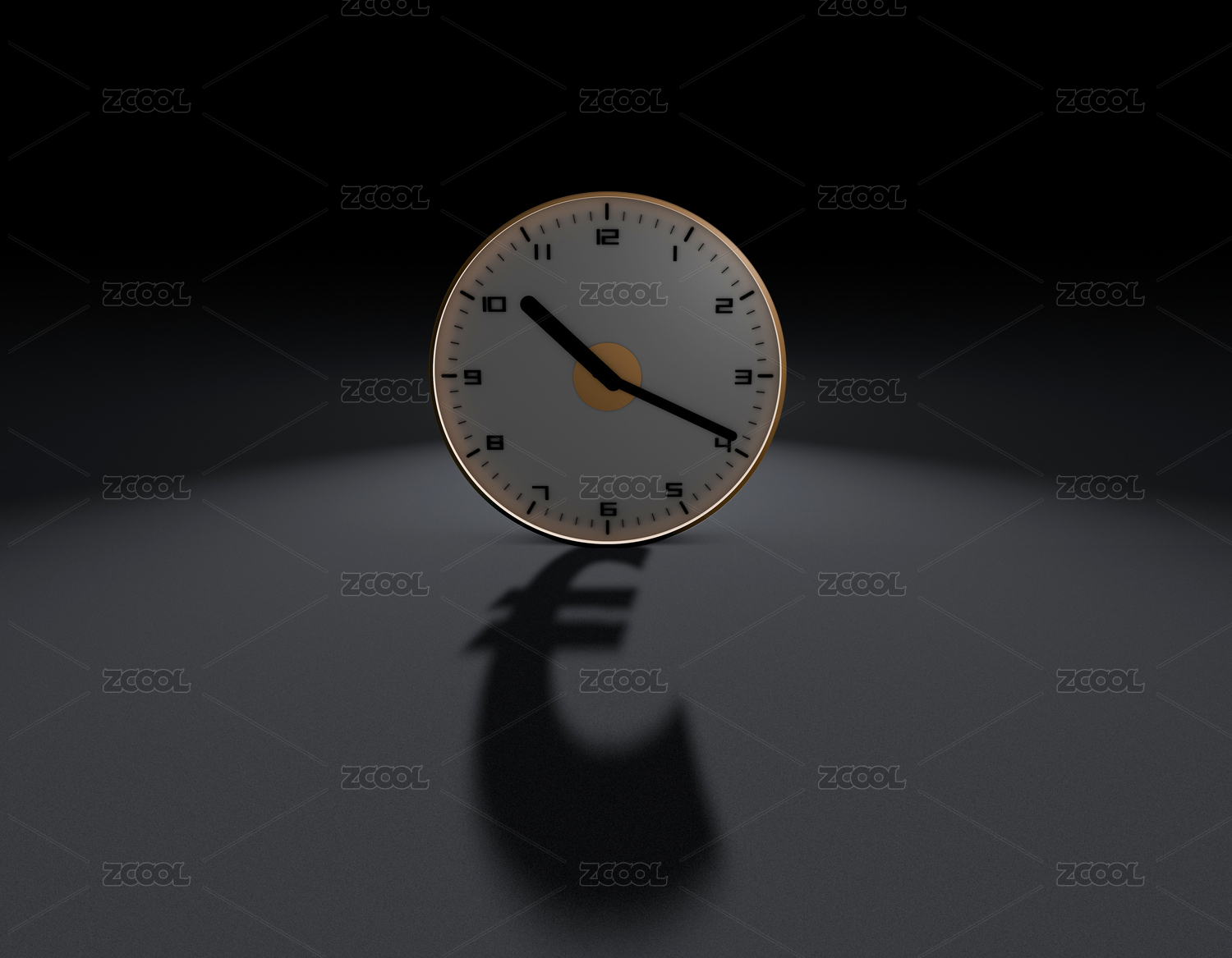 一个时钟投射出欧元符号的投影,代表着时间就是金钱和时间的积累