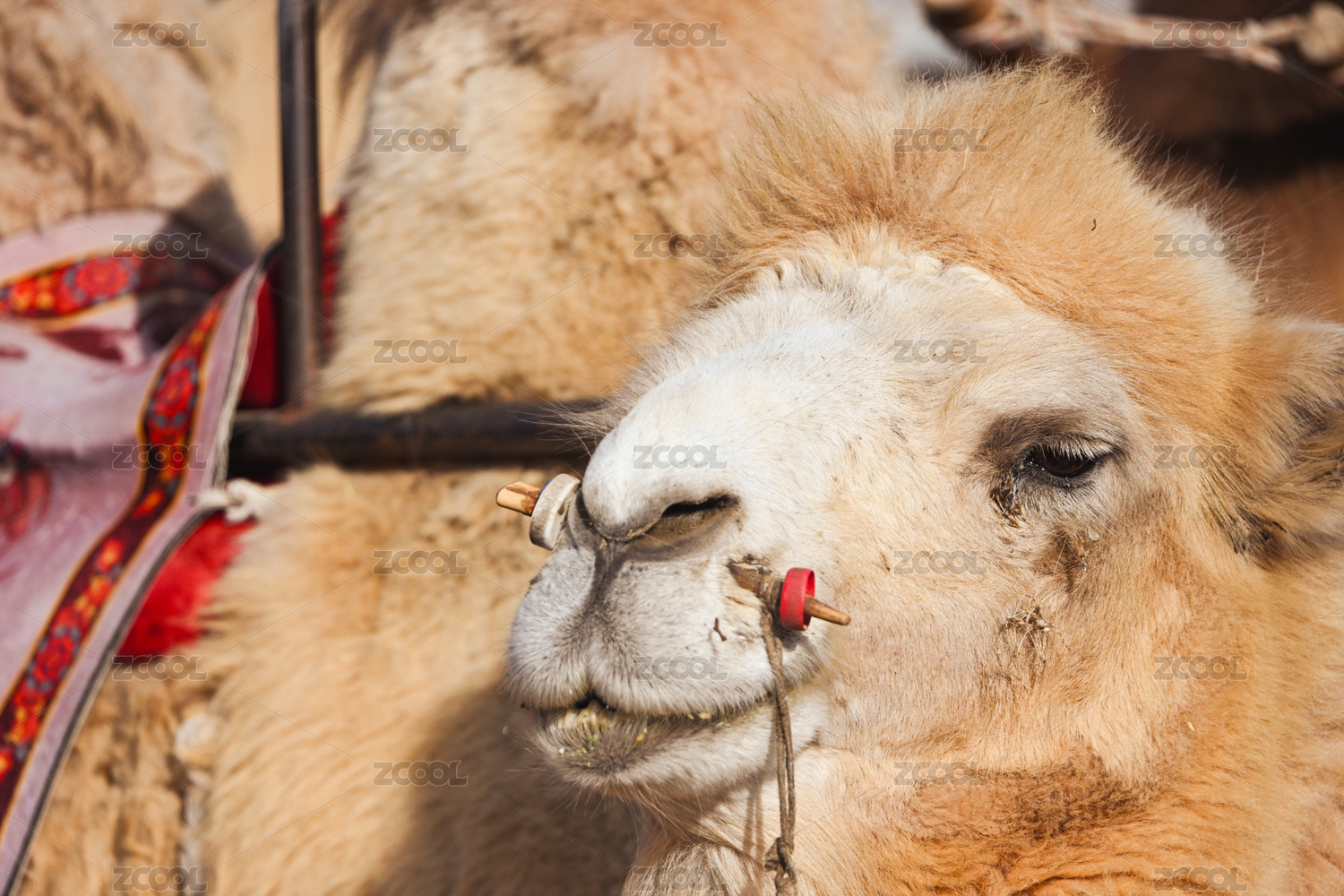 中国甘肃酒泉敦煌鸣沙山骆驼头部特写