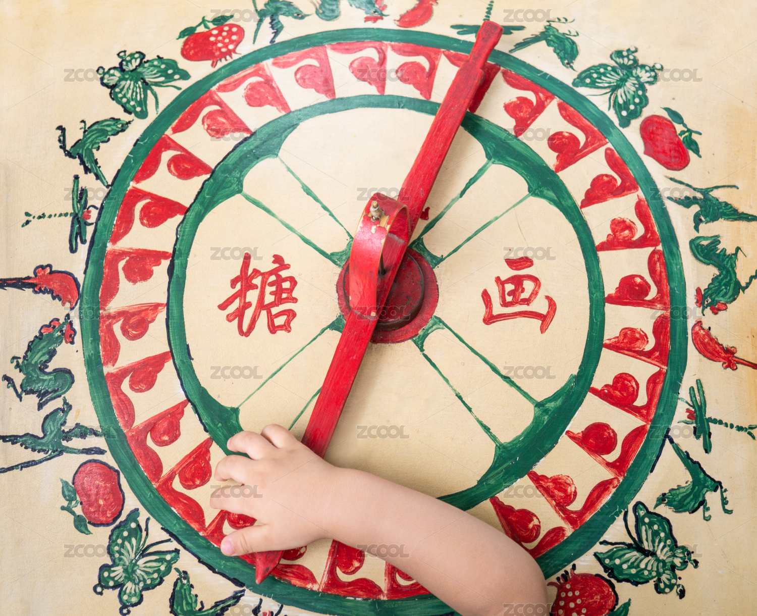 中国民间传统文化糖画木制手绘画板转盘上正在转糖画的小孩的手