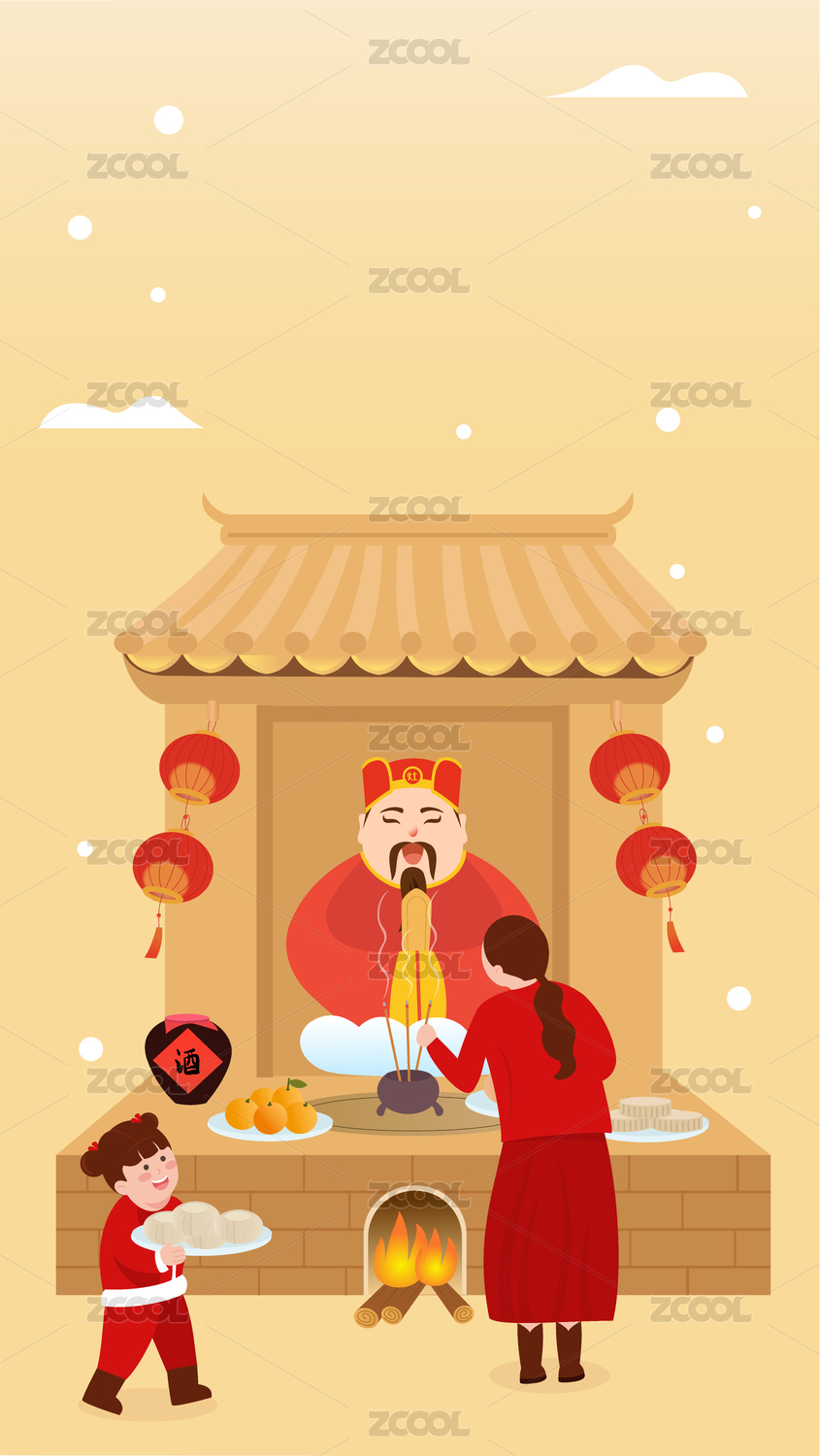 年俗腊月二十三北方小年插画