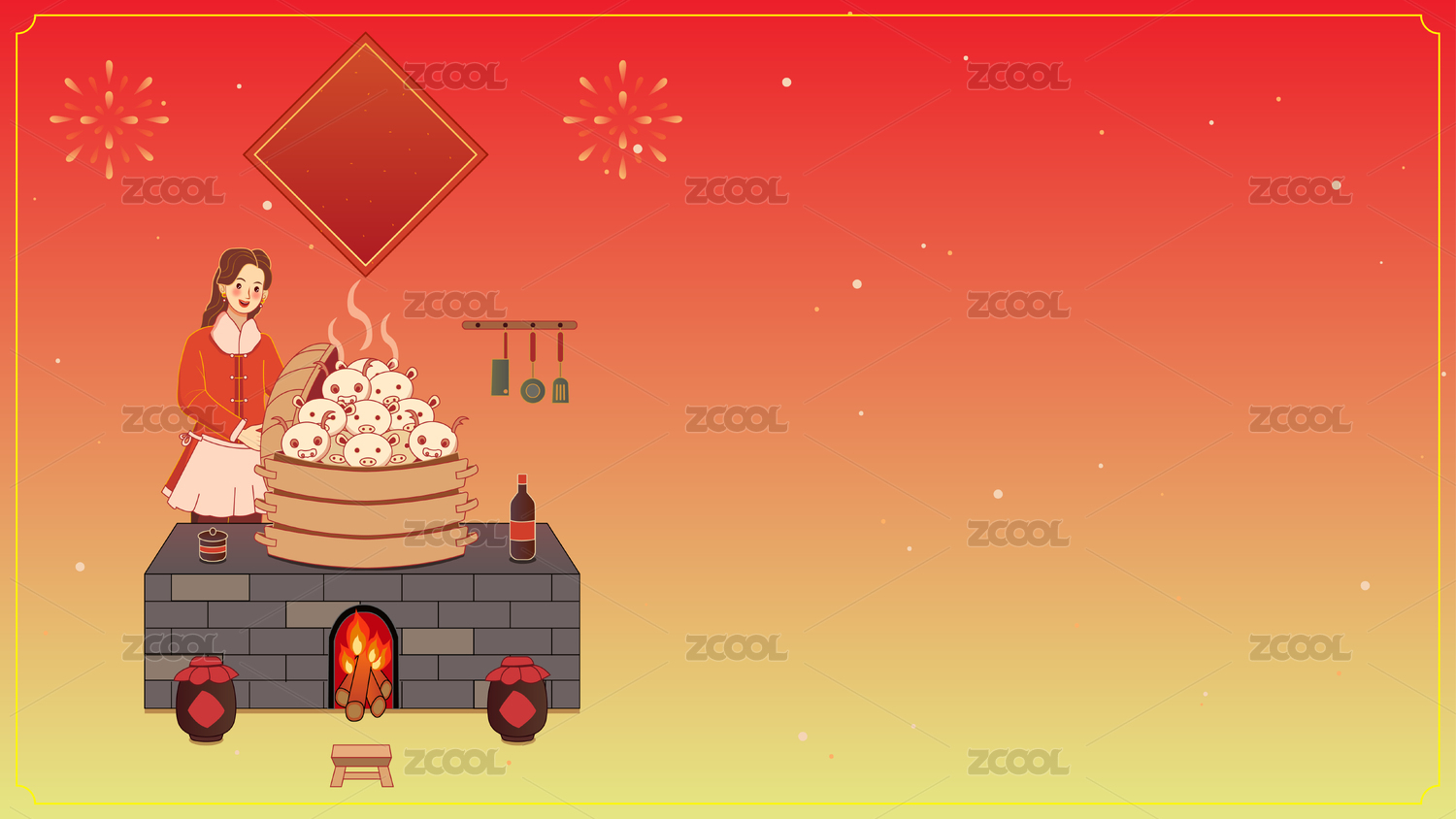 腊月二十九年俗系列-蒸馒头矢量插画