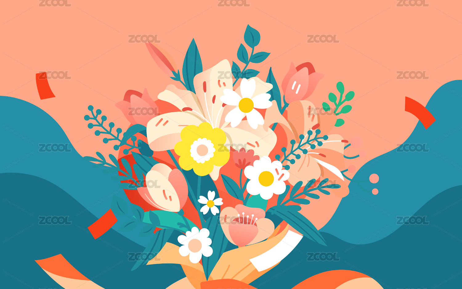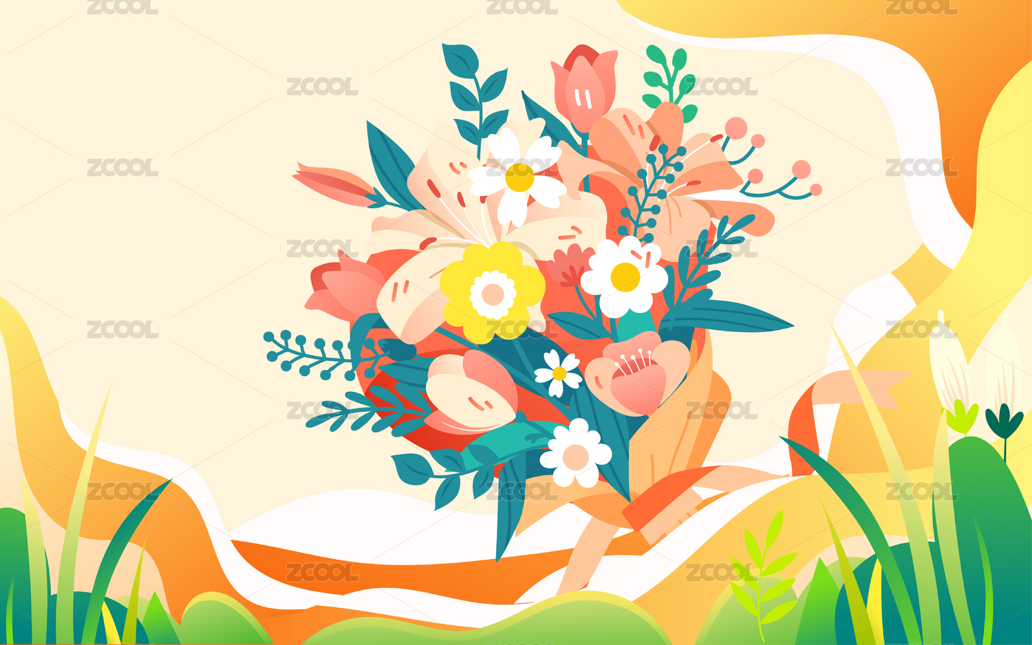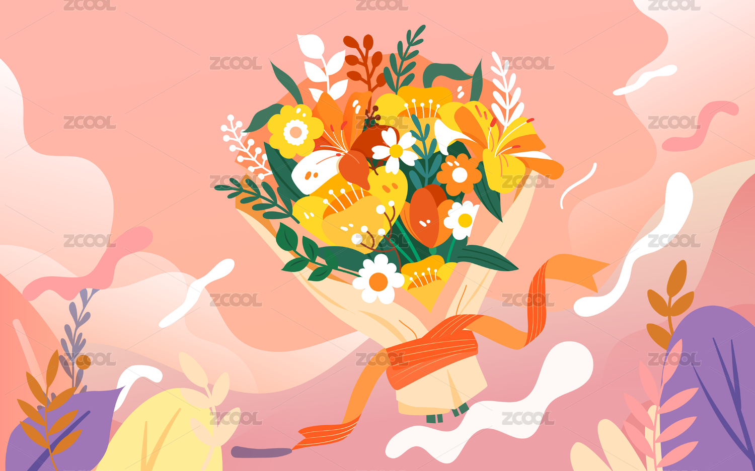520情人节花束插画浪漫爱情鲜花矢量素材